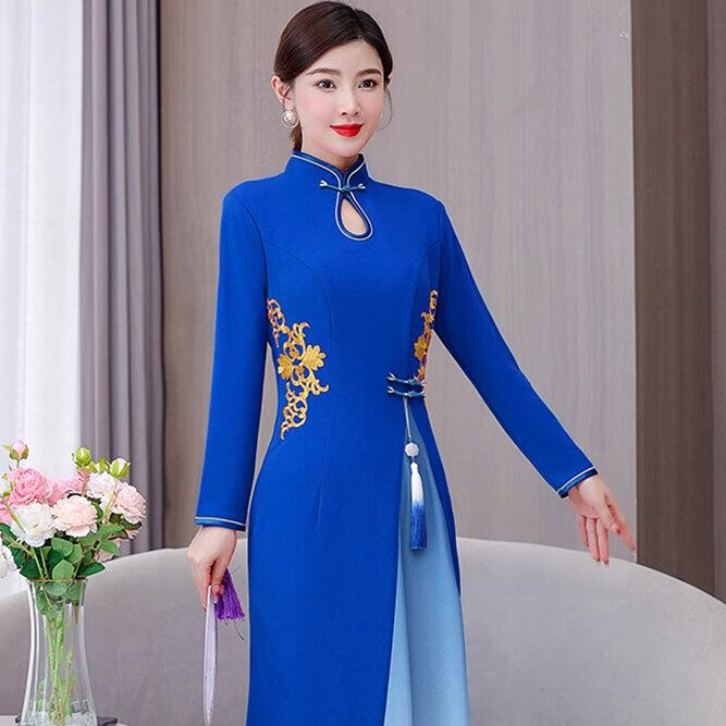 トップスも普段着も揃うチャイナ服専門店chaiです。こちらはチャイナドレス ロングワンピ シンプル ステージ衣装 上品な風合い 長袖 zl408の商品ページです。上品な風合いのチャイナロングドレスで、ステージ衣装におすすめのアイテムです。