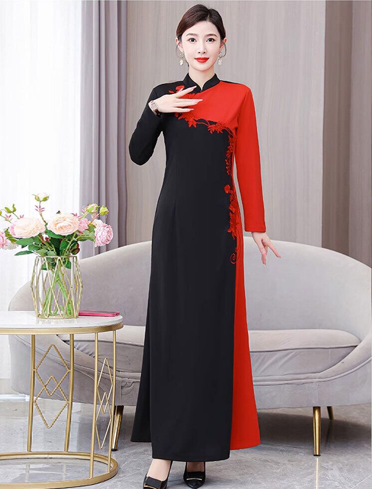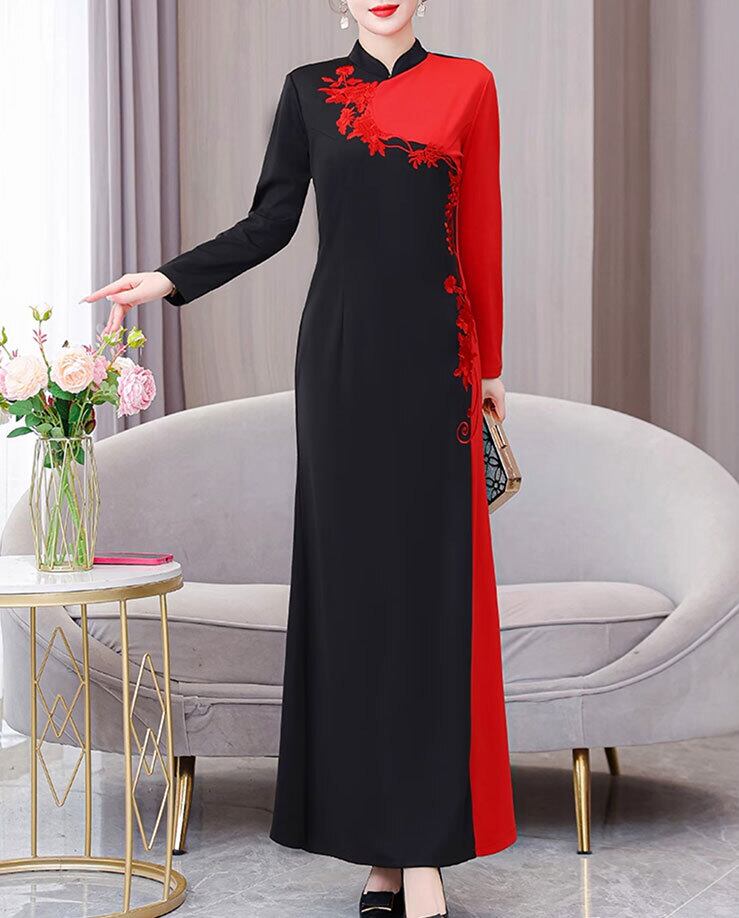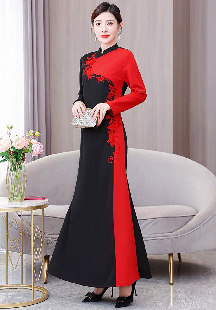 チャイナドレス ロングワンピ シンプル ステージ衣装 上品な風合い 長袖 zl409