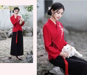 チャイナ服 トップス 刺繍 落ち着いた風合い 斜め合わせ Vネック zt482