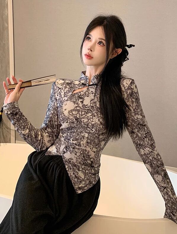 チャイナ服 トップス 秋冬 モダンチャイナ スリム フィット 長袖 普段着 zt487