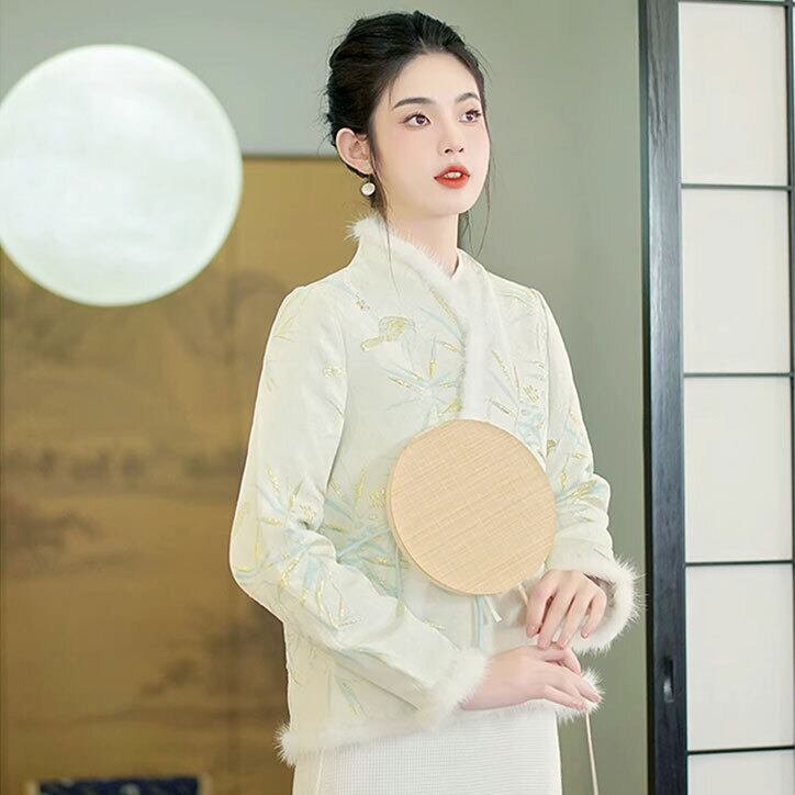 トップスも普段着も揃うチャイナ服専門店chaiです。こちらはチャイナ服 アウター ファー 秋冬 上品 フィミニンな風合い zo205の商品ページです。上品でフェミニンな風合いのファー付きトップスで、冬のチャイナファッションにぴったりのアイテムです。