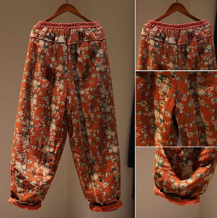 チャイナ服 パンツ 秋冬 厚手 あたたかタイプ 小花柄 ロングパンツ zb213