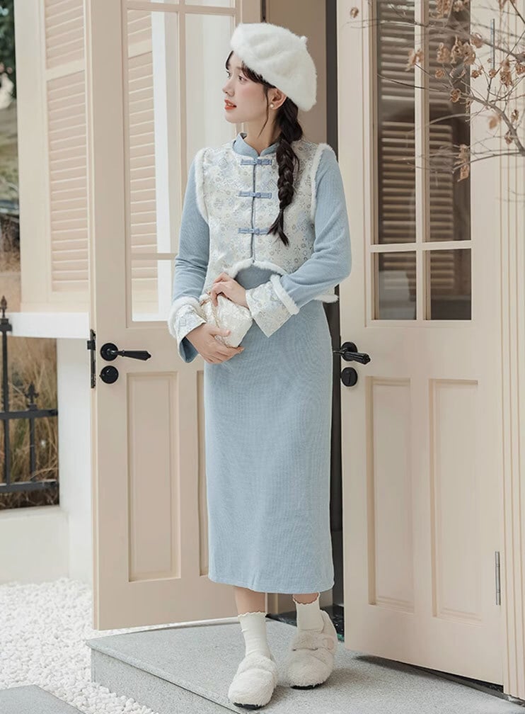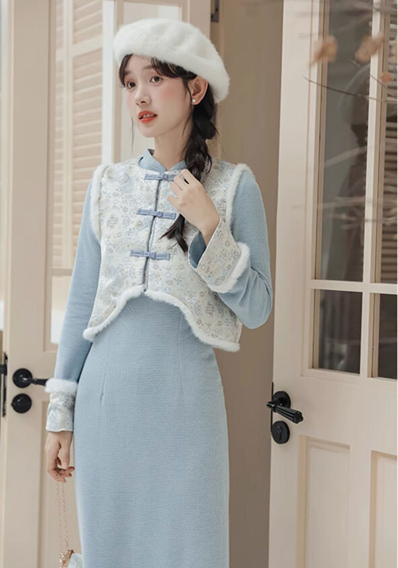 チャイナ服 ベスト 秋冬 チャイナファーベスト セットでも買える zv74
