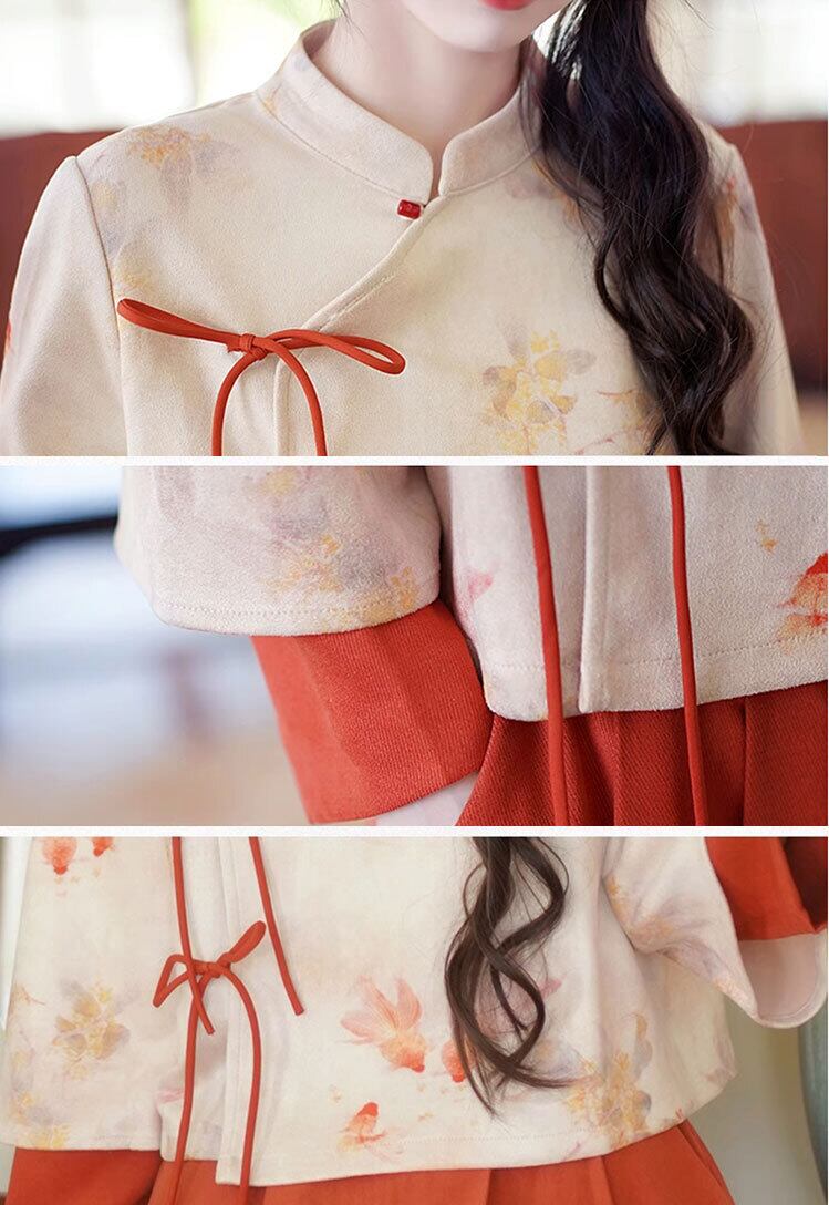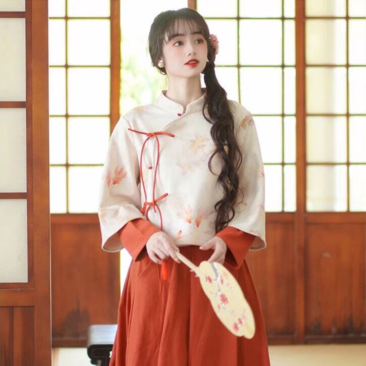 チャイナ服 トップス 秋冬 落ち着いた風合い 長袖 装飾トップス zt494