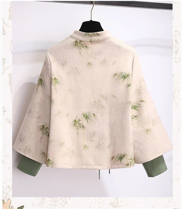 チャイナ服 トップス 秋冬 落ち着いた風合い 長袖 笹竹柄 装飾トップス zt495