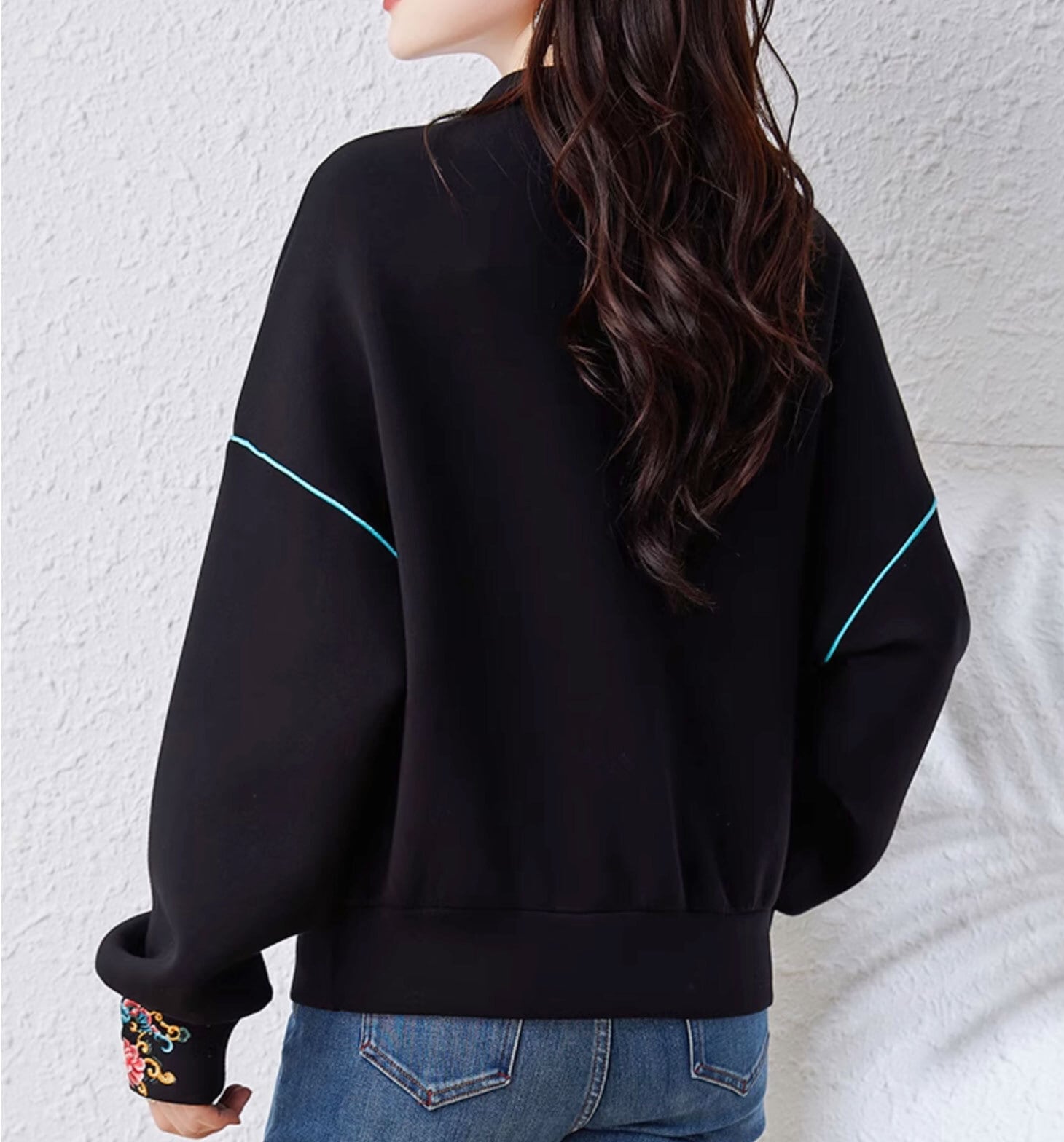 トップスも普段着も揃うチャイナ服専門店chaiです。こちらはチャイナ服 トップス 秋冬 刺繍長袖チャイナトップス ブラック zt498の商品ページです。モダンなテイストのチャイナトップスで、秋冬の普段着に使いやすいアイテムです。
