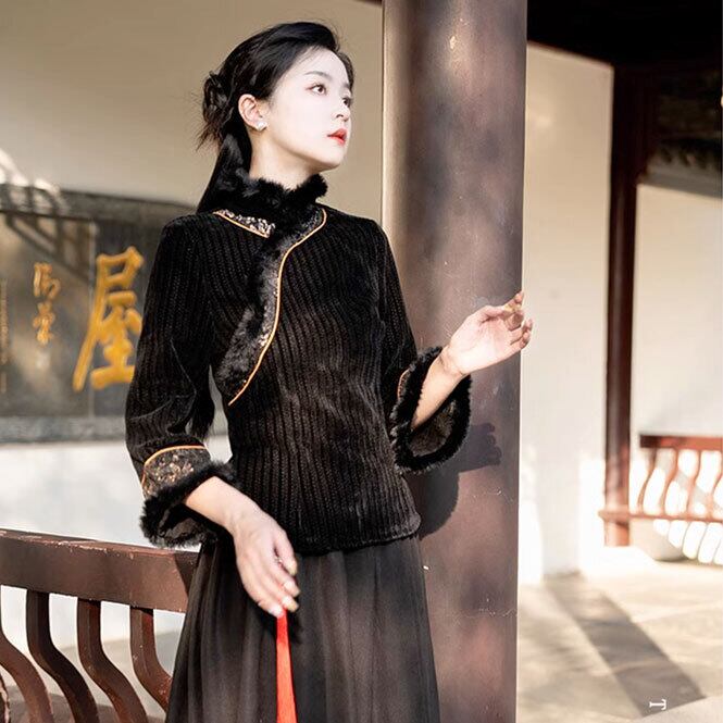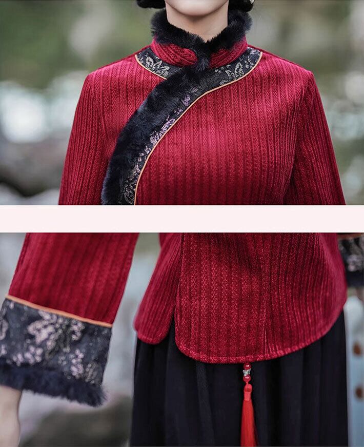 チャイナ服 トップス 秋冬 ファー付き 厚手 上品な風合い 二胡衣装 zt500