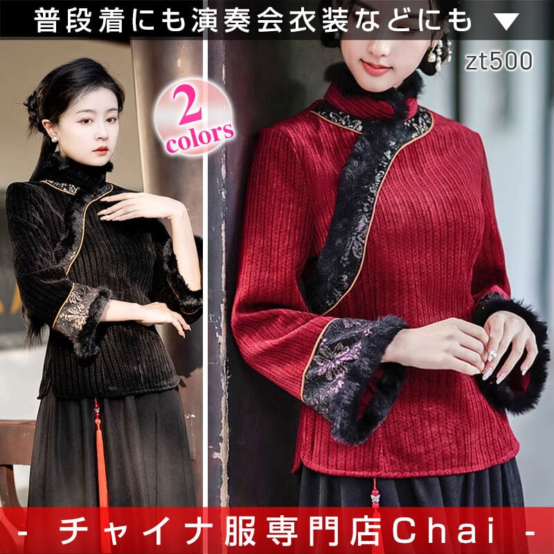 トップスも普段着も揃うチャイナ服専門店chaiです。こちらはチャイナ服 トップス 秋冬 ファー付き 厚手 上品な風合い 二胡衣装 zt500の商品ページです。ファー付きの上品なチャイナトップスで、秋冬の普段着にも使いやすいアイテムです。