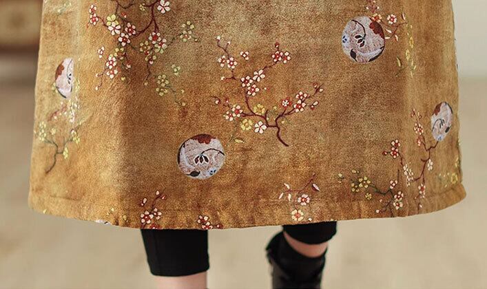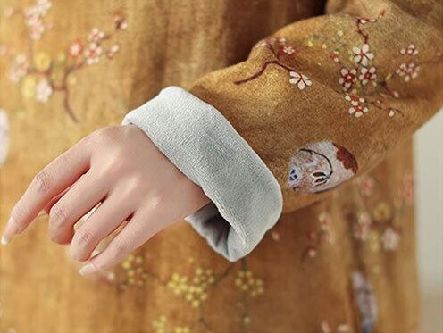 チャイナ服 ロングワンピース 秋冬 ゆったり 厚手 素朴 落ち着いた風合い 長袖 zl416