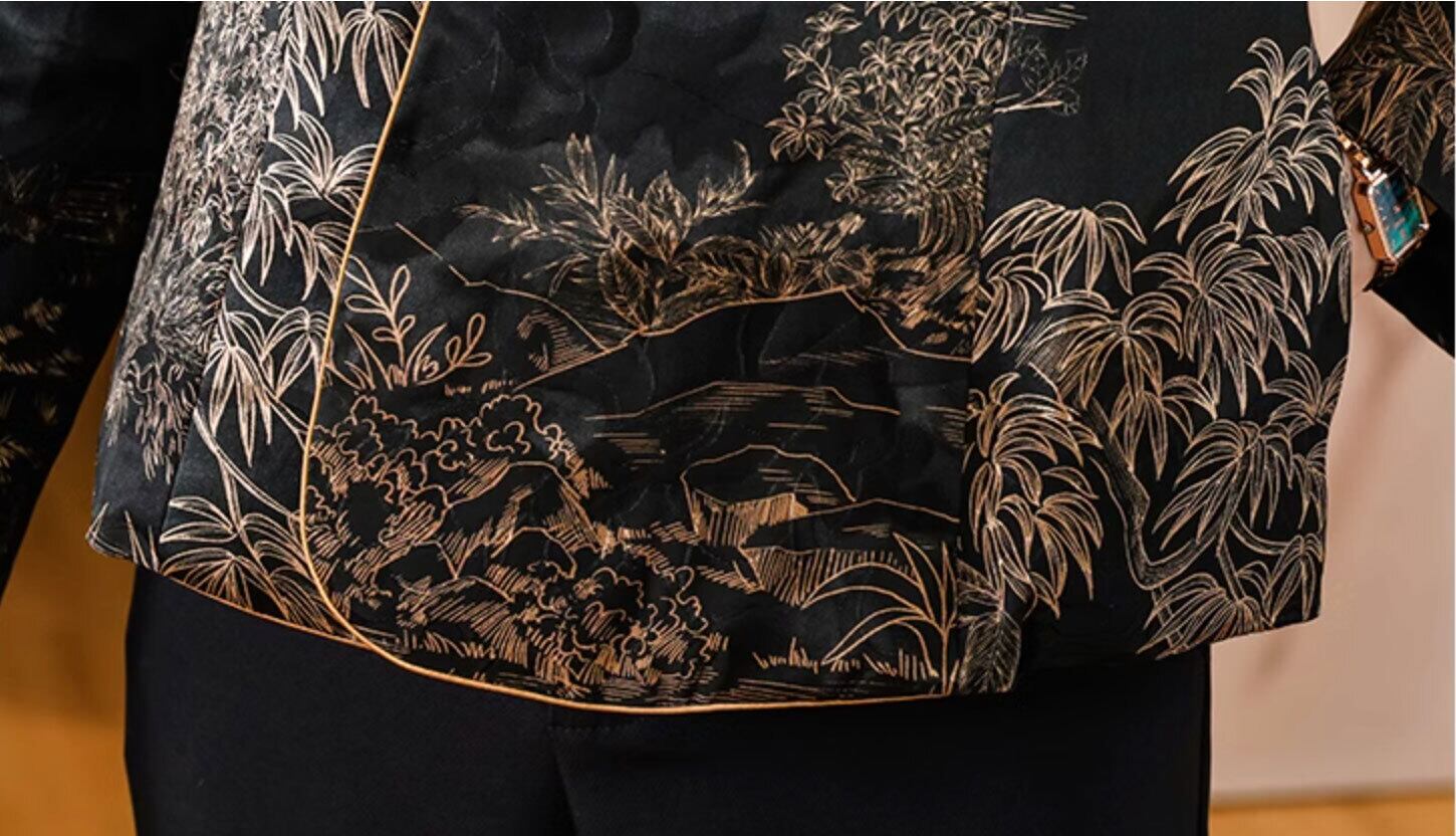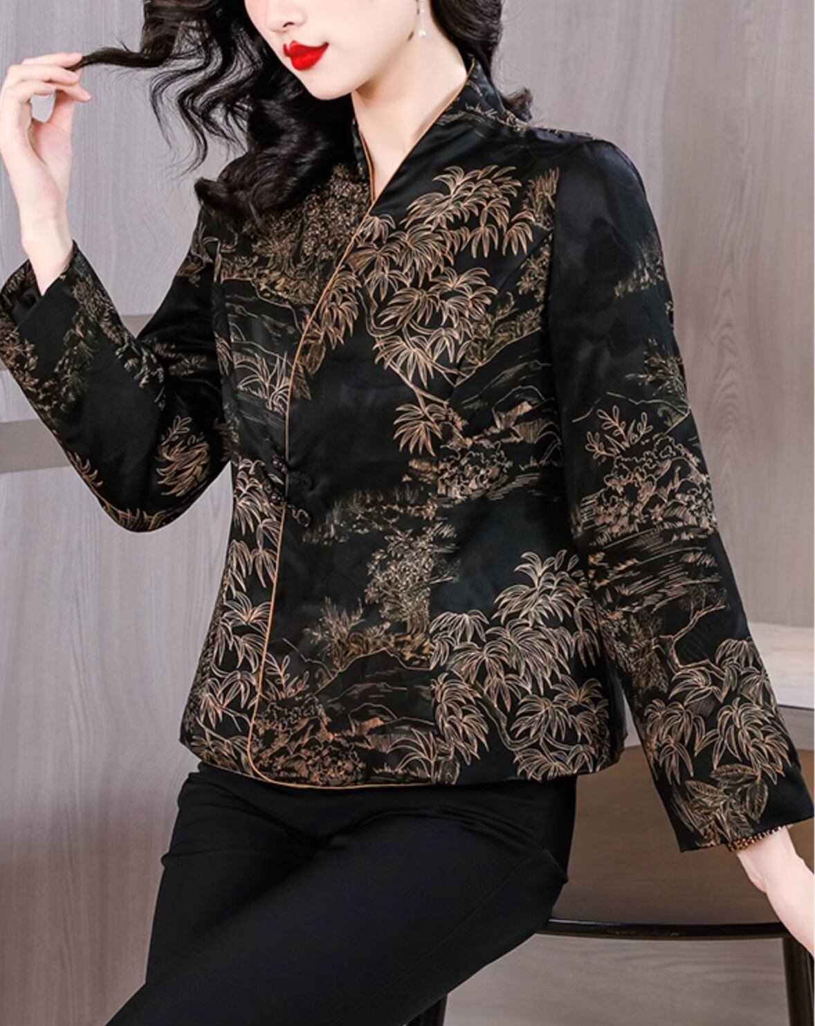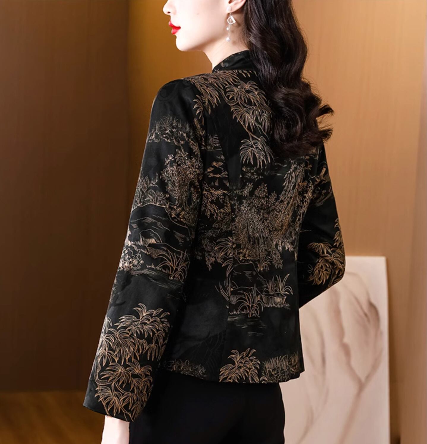 チャイナ服 トップス 秋冬 上品な風合い 斜め合わせ ブラック zt508
