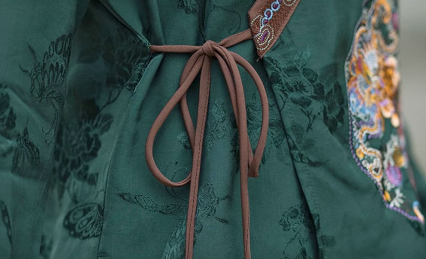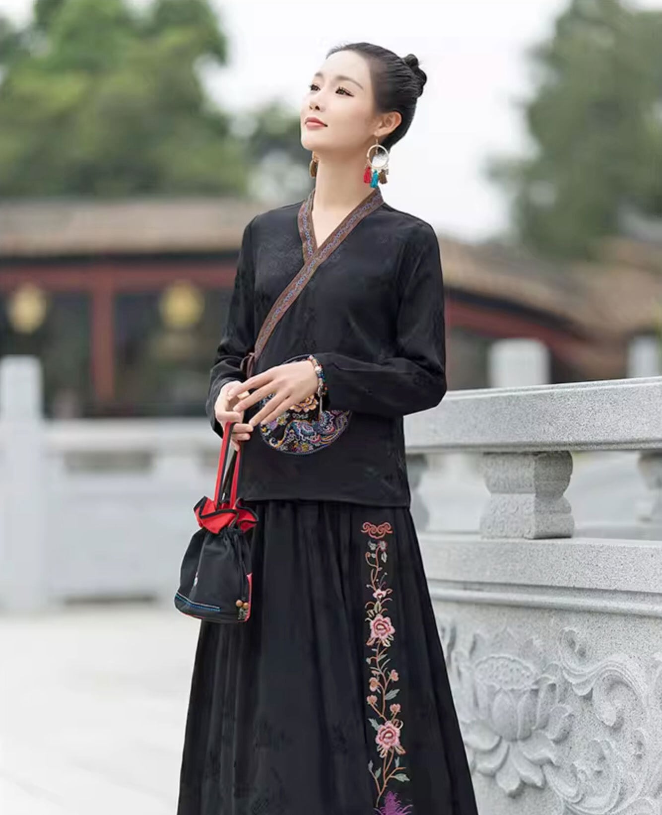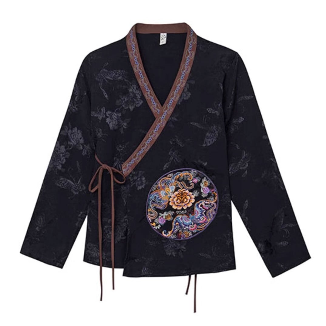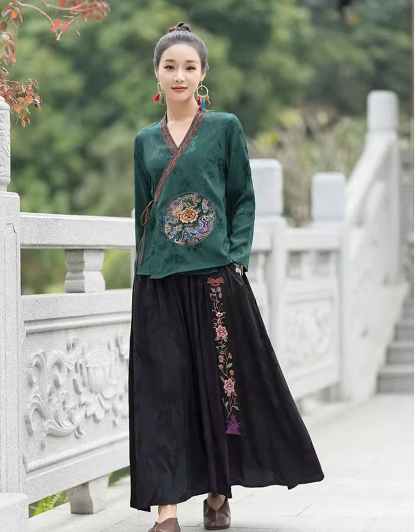 チャイナ服 トップス 秋冬 斜め合わせ Vネック 刺繍 落ち着いた風合い 長袖 zt511
