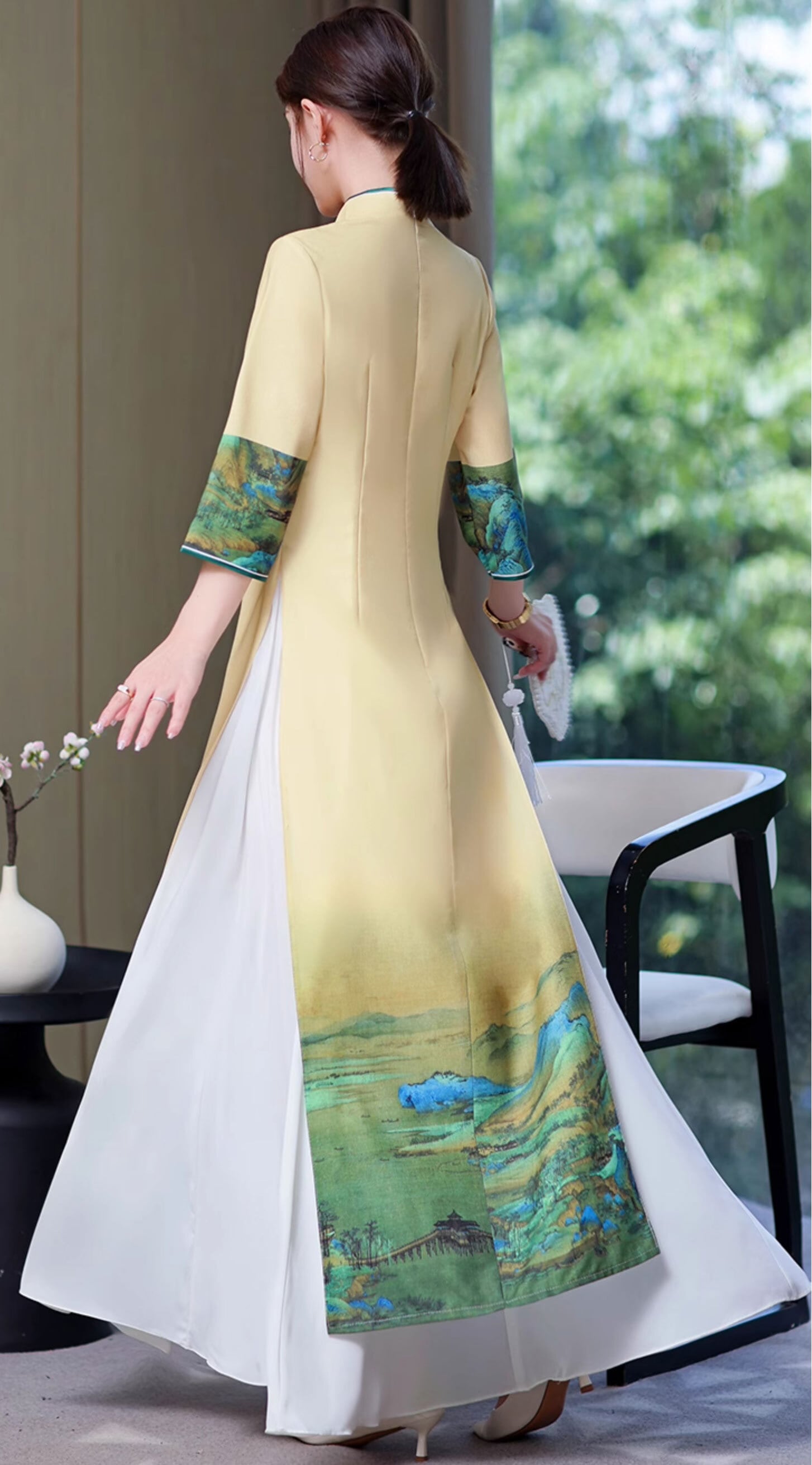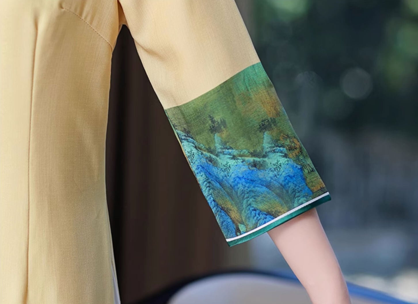 チャイナドレス チャイナ服 ロングワンピース 落ち着いた風合い 切り替え七分袖 二胡衣装 民族衣装 zl429