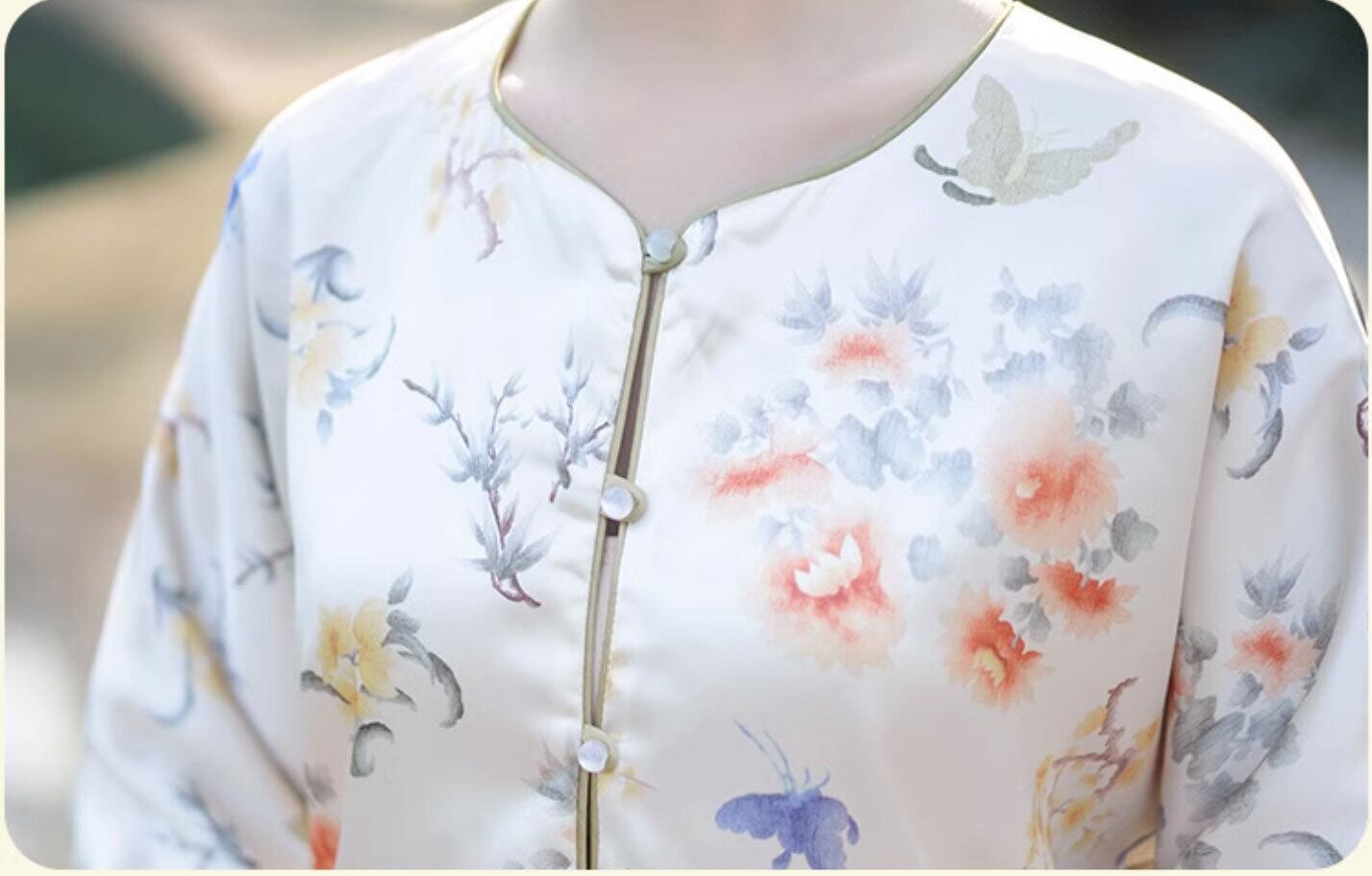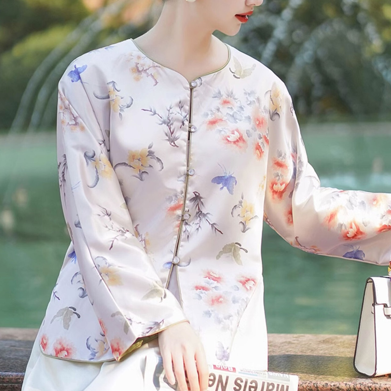 チャイナ服 トップス 春秋 高級感 上品な風合い ゆったり 長袖 襟なし 花柄 zt529