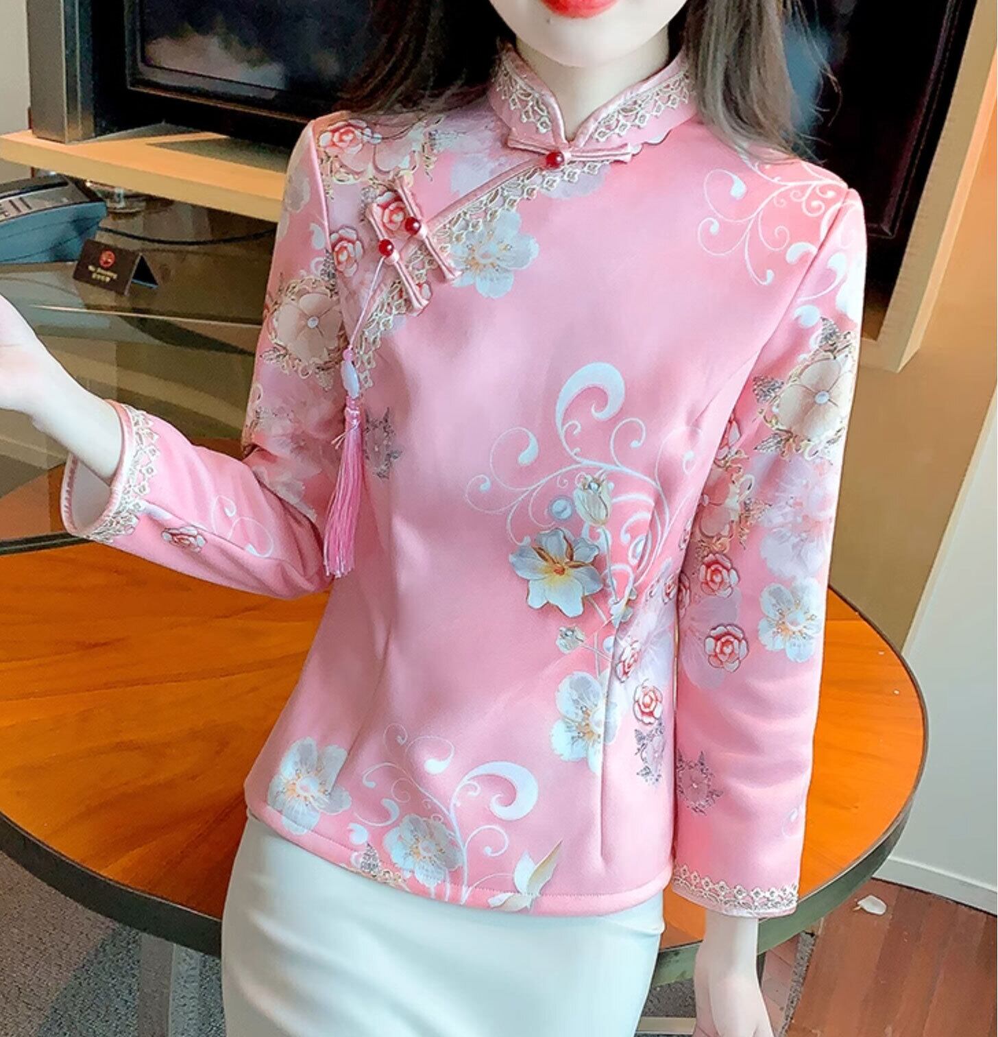チャイナ服 トップス 春秋 上品な風合い 長袖 装飾チャイナシャツ zt538