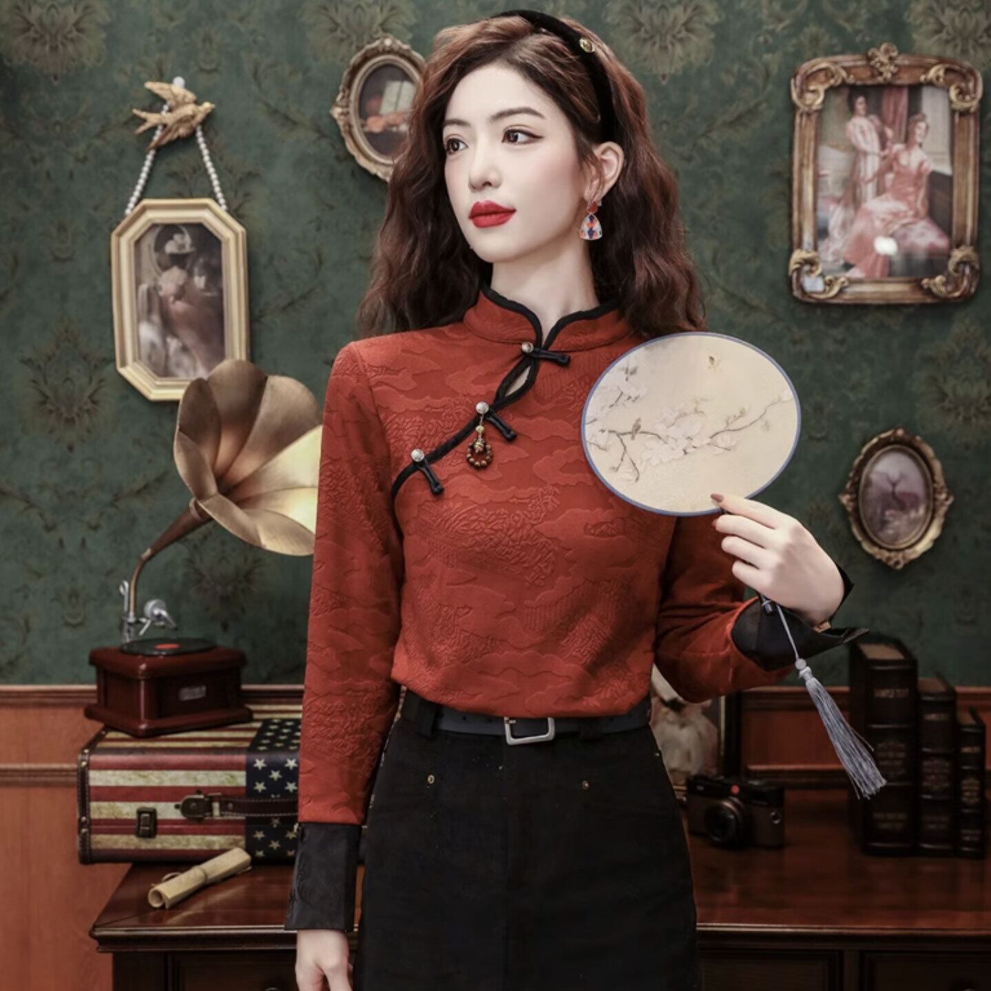 チャイナ服 トップス 春秋 素朴な風合い 切り替え袖 浅襟 zt541