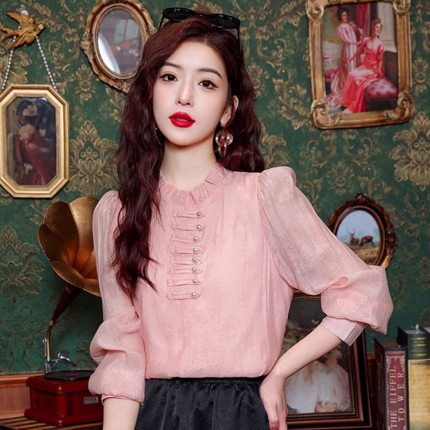 チャイナ服 トップス 春秋 上品な風合い フリル襟 長袖 変形チャイナシャツ zt543