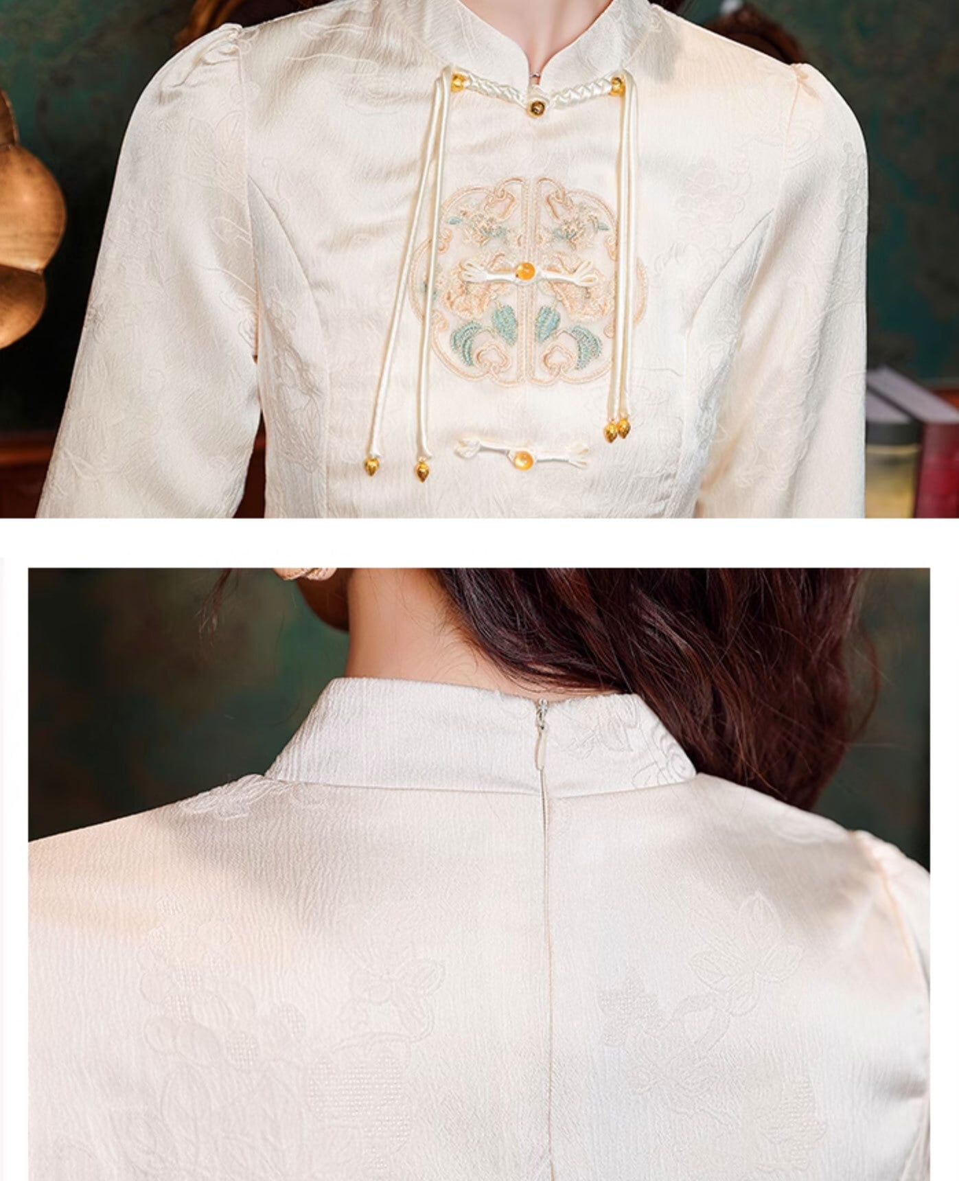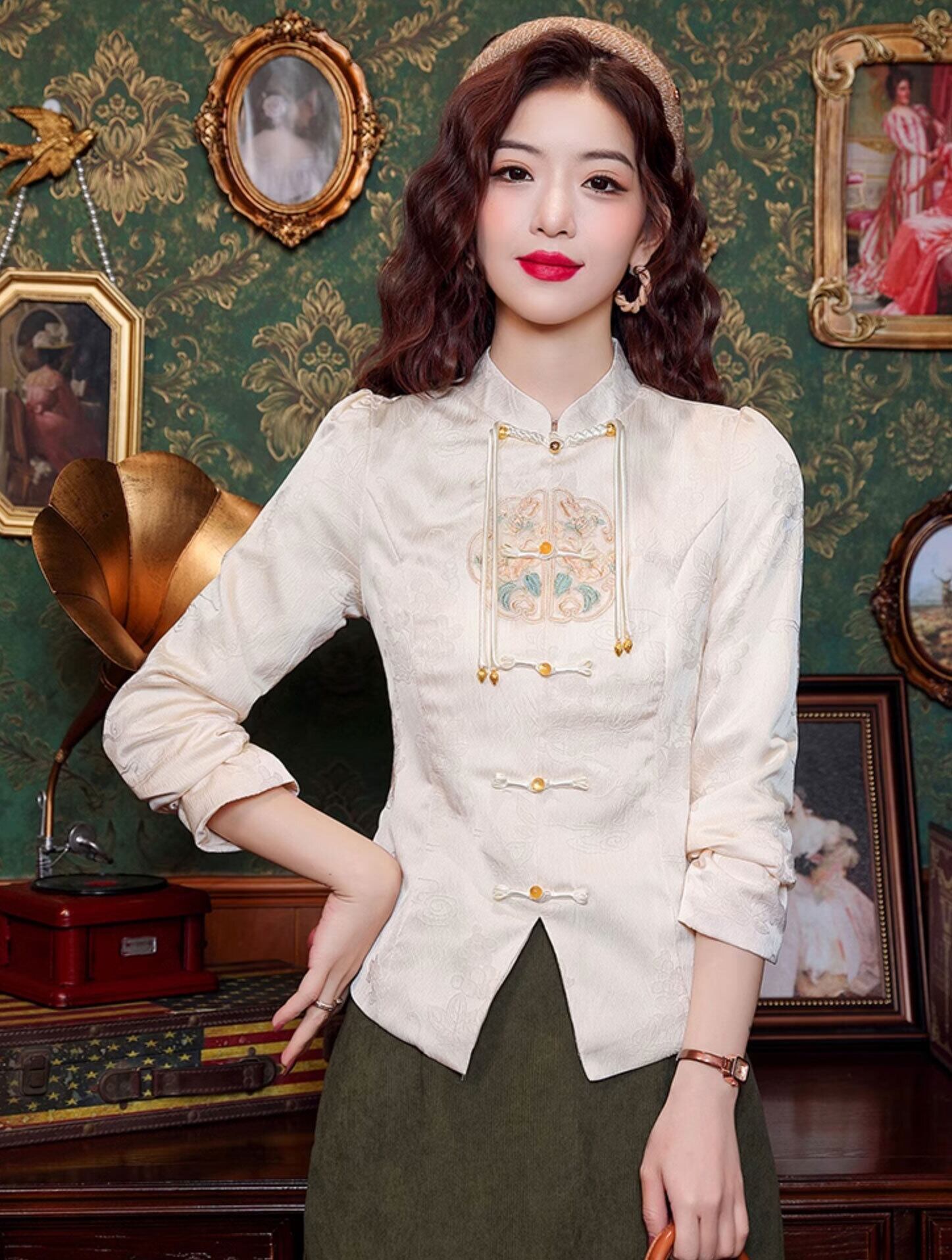 チャイナ服 トップス 春秋 上品な風合い 刺繍 飾りボタン 装飾チャイナシャツ zt544
