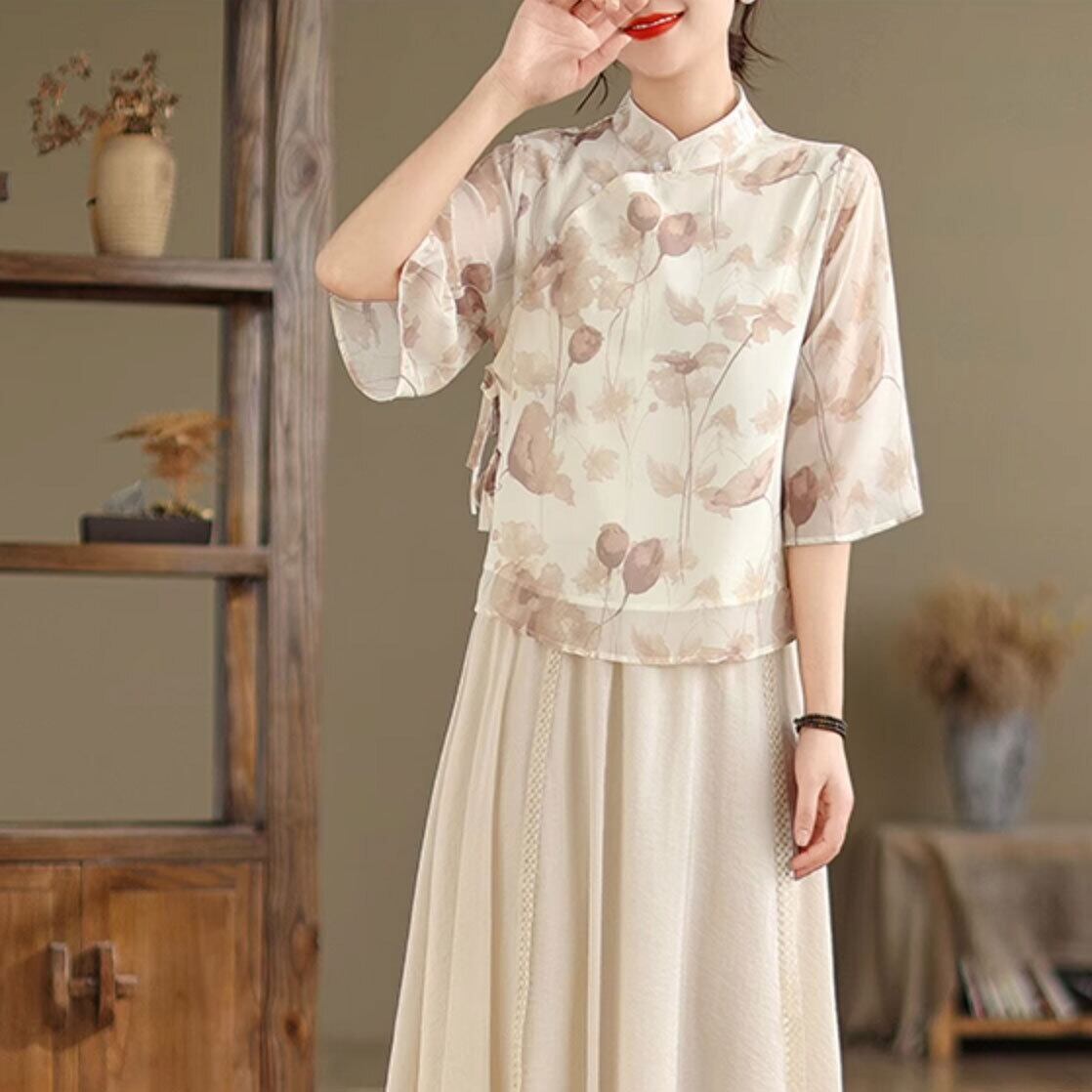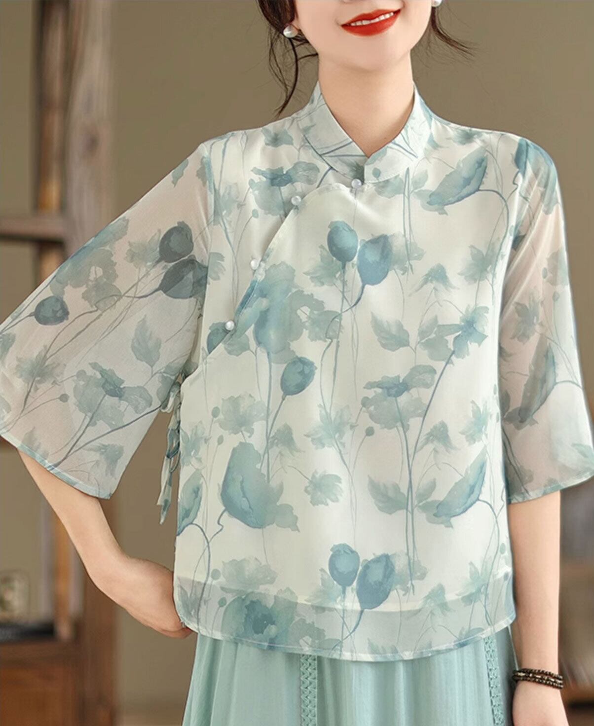 チャイナ服 トップス 春夏 薄手 五分袖 ゆったり 爽やかな風合い zh495