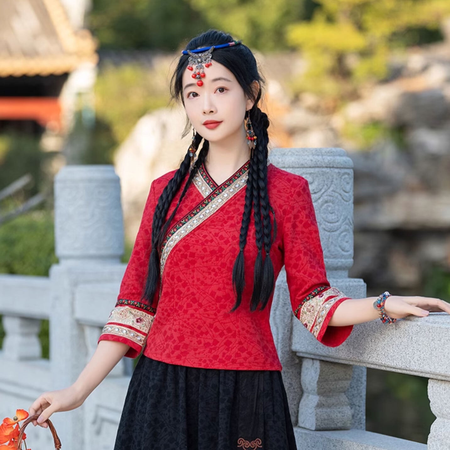 トップスも普段着も揃うチャイナ服専門店chaiです。こちらはチャイナ服 トップス 上品な風合い Vネック 刺繍 装飾チャイナシャツ zh505の商品ページです。上品な風合いのチャイナトップスで、普段着にできるアイテムです。