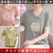 トップスも普段着も揃うチャイナ服専門店chaiです。こちらはチャイナ服 トップス サマーニット 上品 刺繍 落ち着いた風合い 半袖 襟なし zh519の商品ページです。サマーニットのチャイナトップスで、春夏の普段着につかいやすいアイテムです。