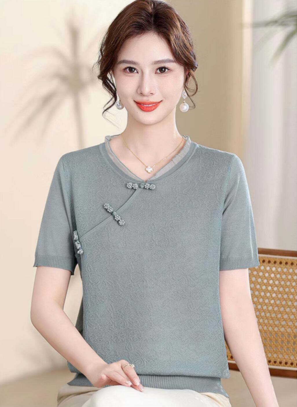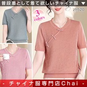 チャイナ服 トップス 上品 シンプル 落ち着いた風合い 半袖 襟なし zh520