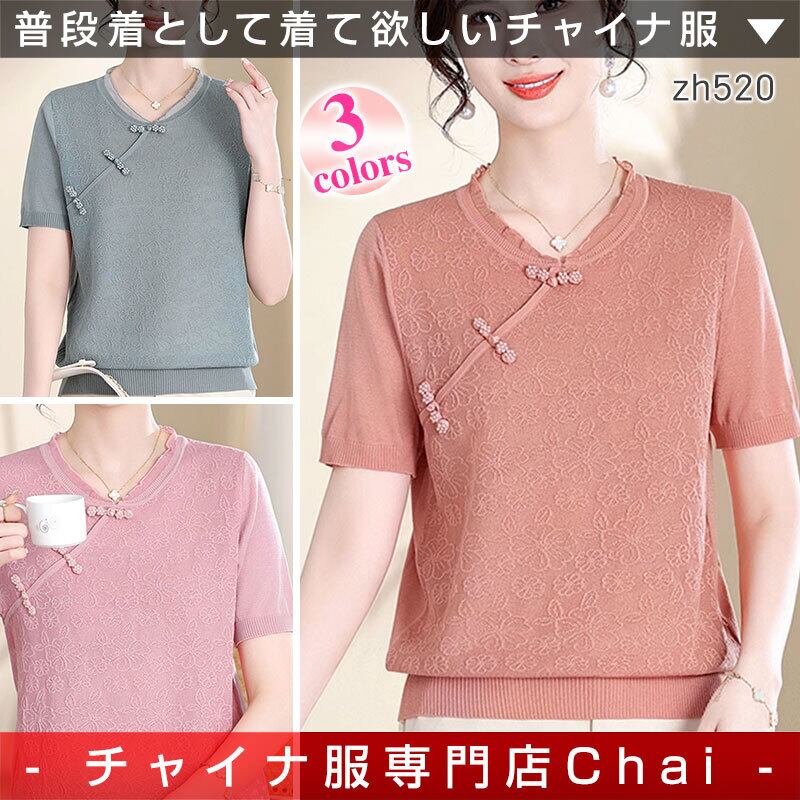 トップスも普段着も揃うチャイナ服専門店chaiです。こちらはチャイナ服 トップス 上品 シンプル 落ち着いた風合い 半袖 襟なし zh520の商品ページです。シンプルで上品なチャイナトップスで、春夏の普段着につかいやすいアイテムです。