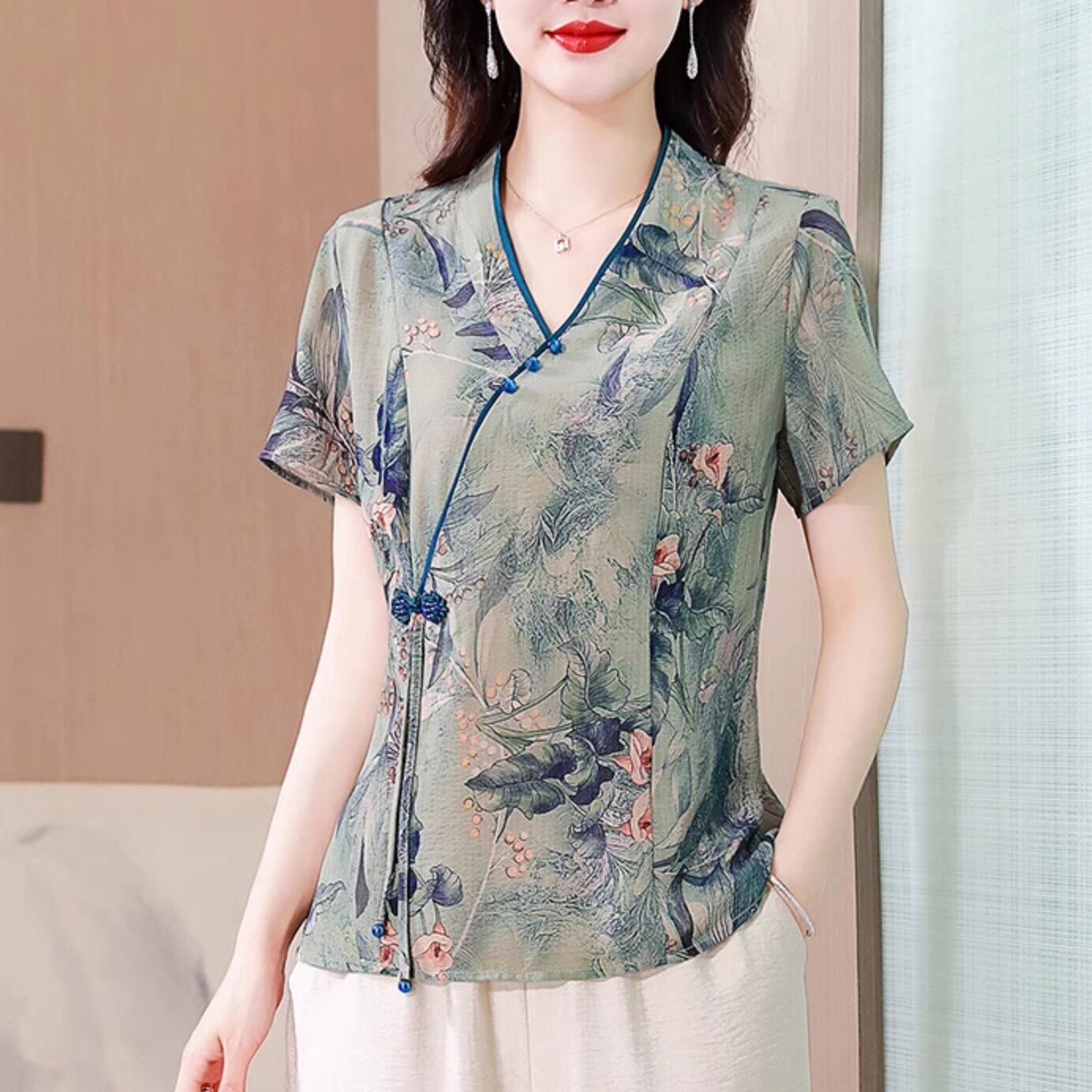 チャイナ服 トップス 上品な風合い 普段着チャイナトップス 春夏半袖 zh525