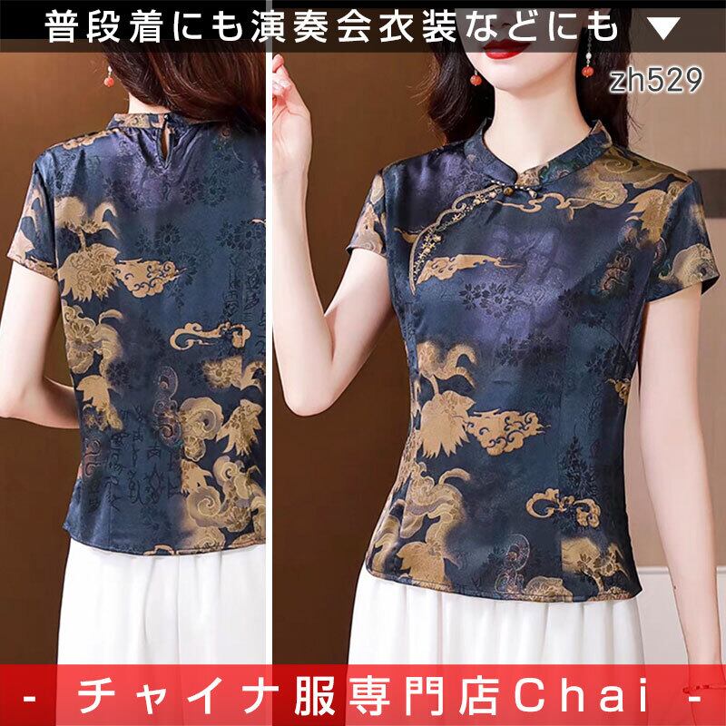 チャイナ服 トップス 上品 落ち着いた風合い 浅襟 半袖 普段着チャイナトップス 二胡衣装 zh529