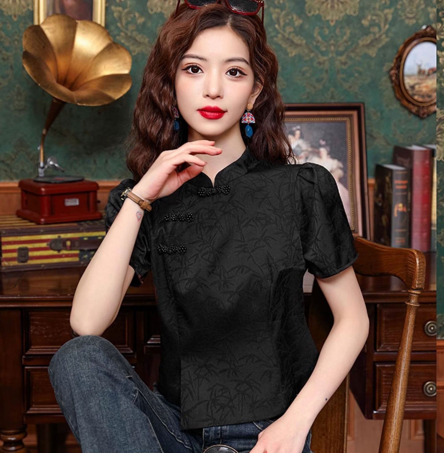 チャイナ服 トップス 落ち着いた風合い 春夏 普段着チャイナトップス 半袖 zh534