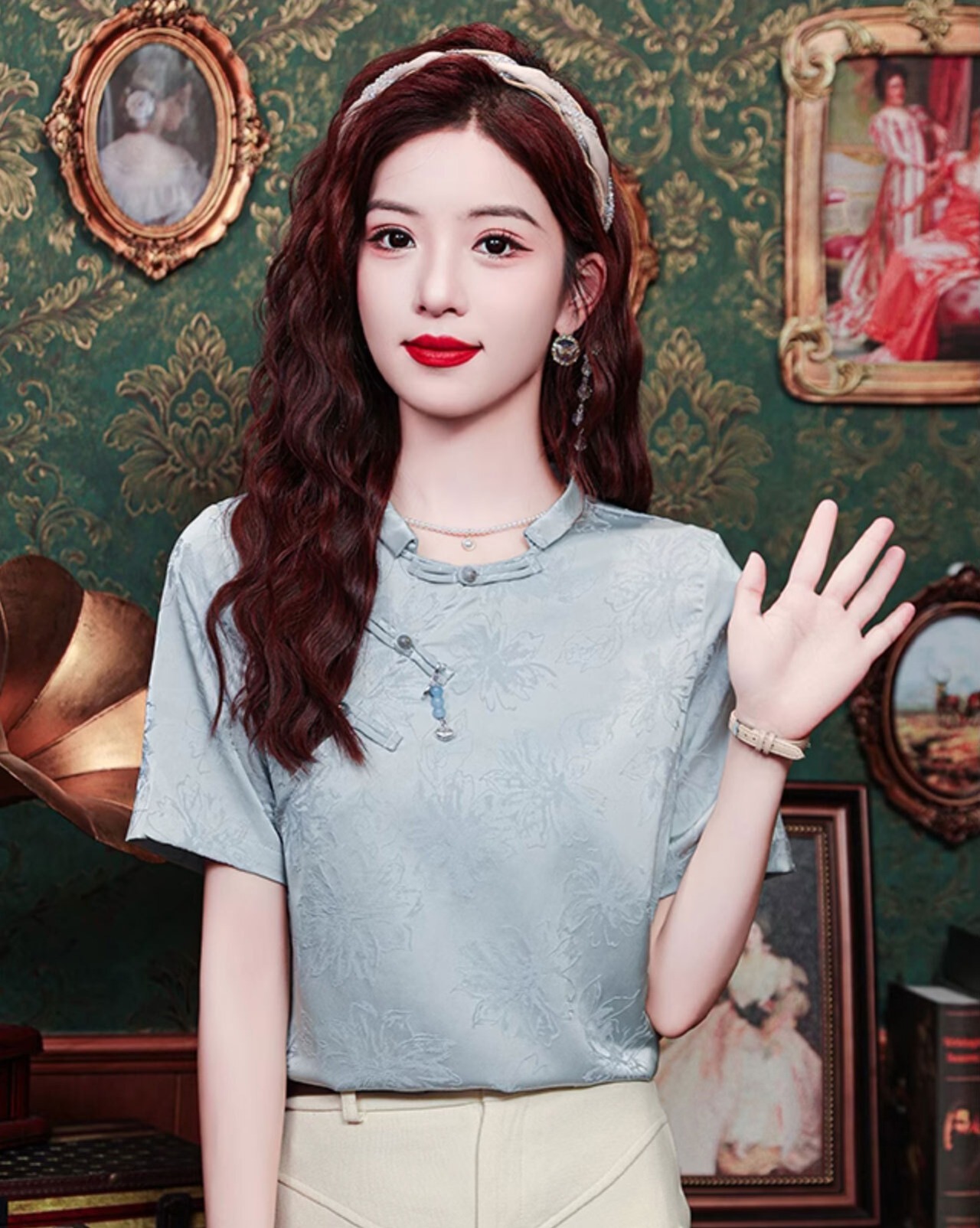 チャイナ服 トップス 上品な風合い 春夏 半袖 普段着チャイナトップス zh535