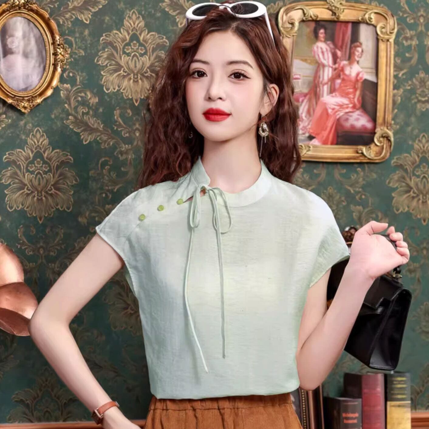 チャイナ風トップス シンプル 上品な風合い 春夏 半袖 zh540
