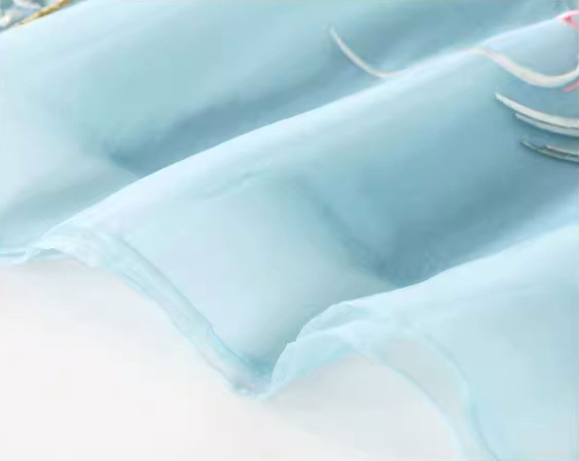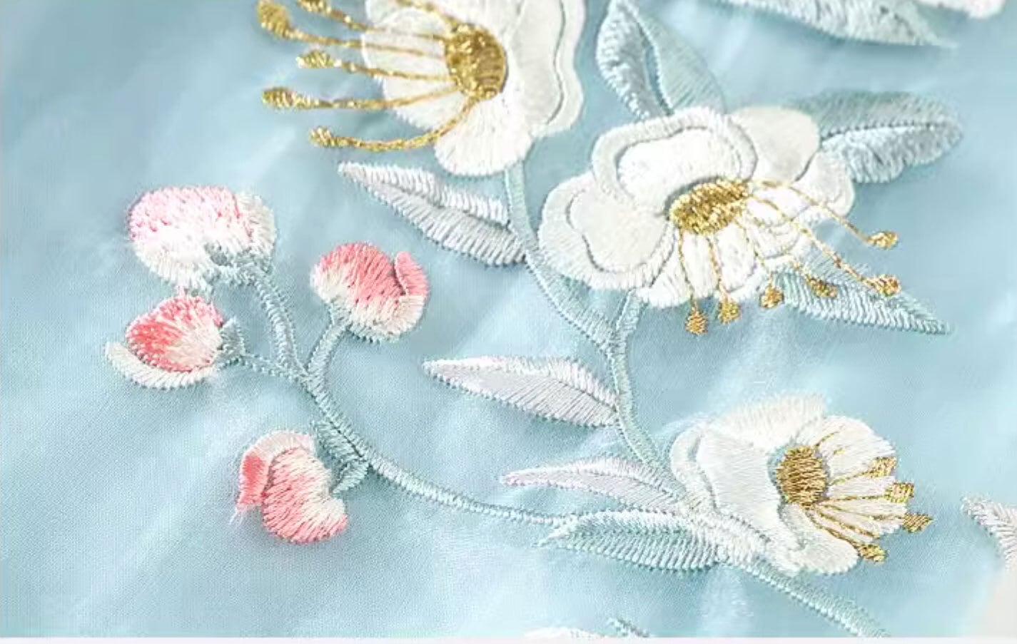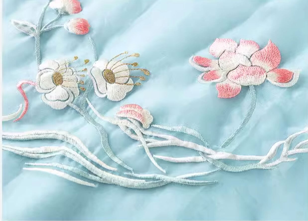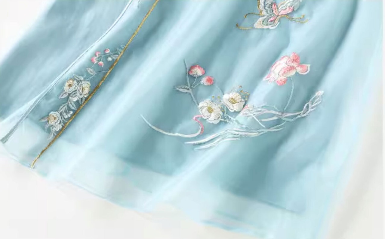 チャイナ服 ワンピース 七分袖 刺繍 爽やかな風合い 水色 チャイナ風ワンピ zl449