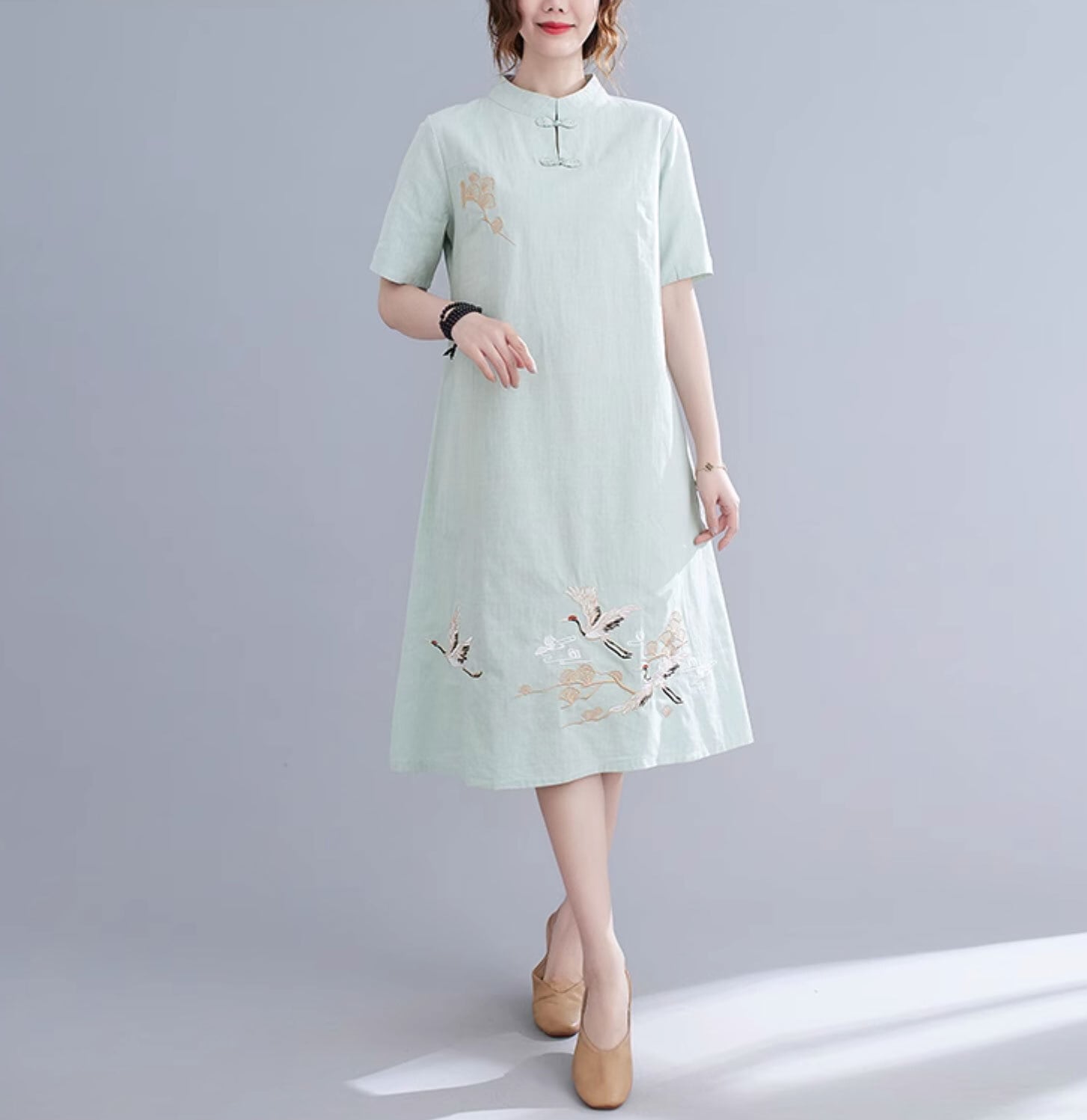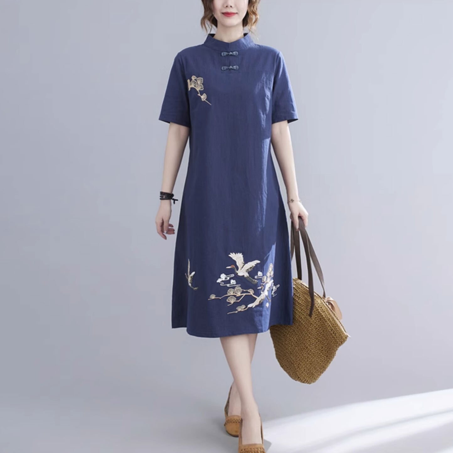 チャイナ服 ワンピース 半袖 刺繍 素朴な風合い チャイナ風ワンピ シンプル zl451