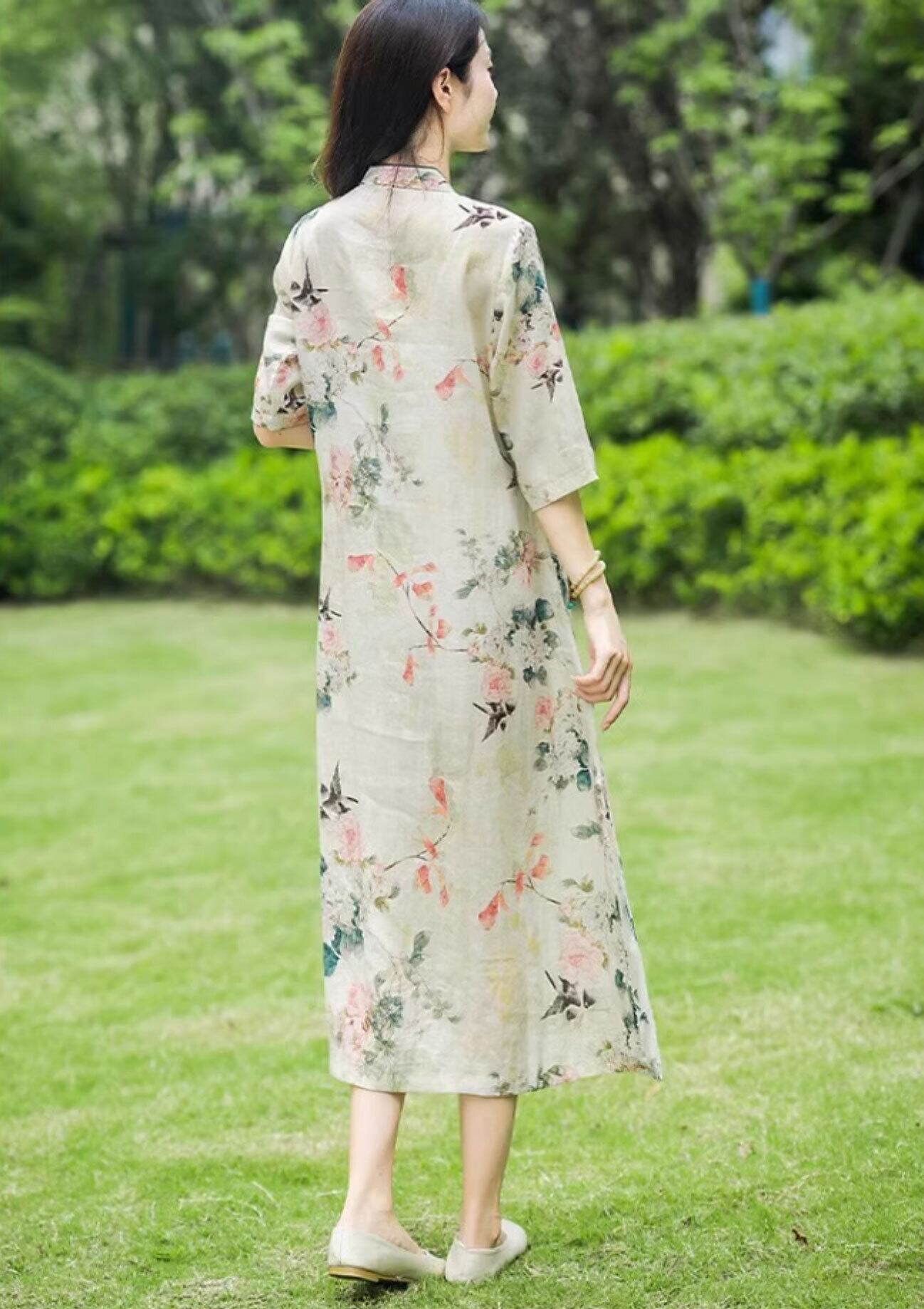 チャイナドレス チャイナ風ワンピース 素朴な花柄 五分袖 ゆったり 落ち着いた風合い アオザイ zl457