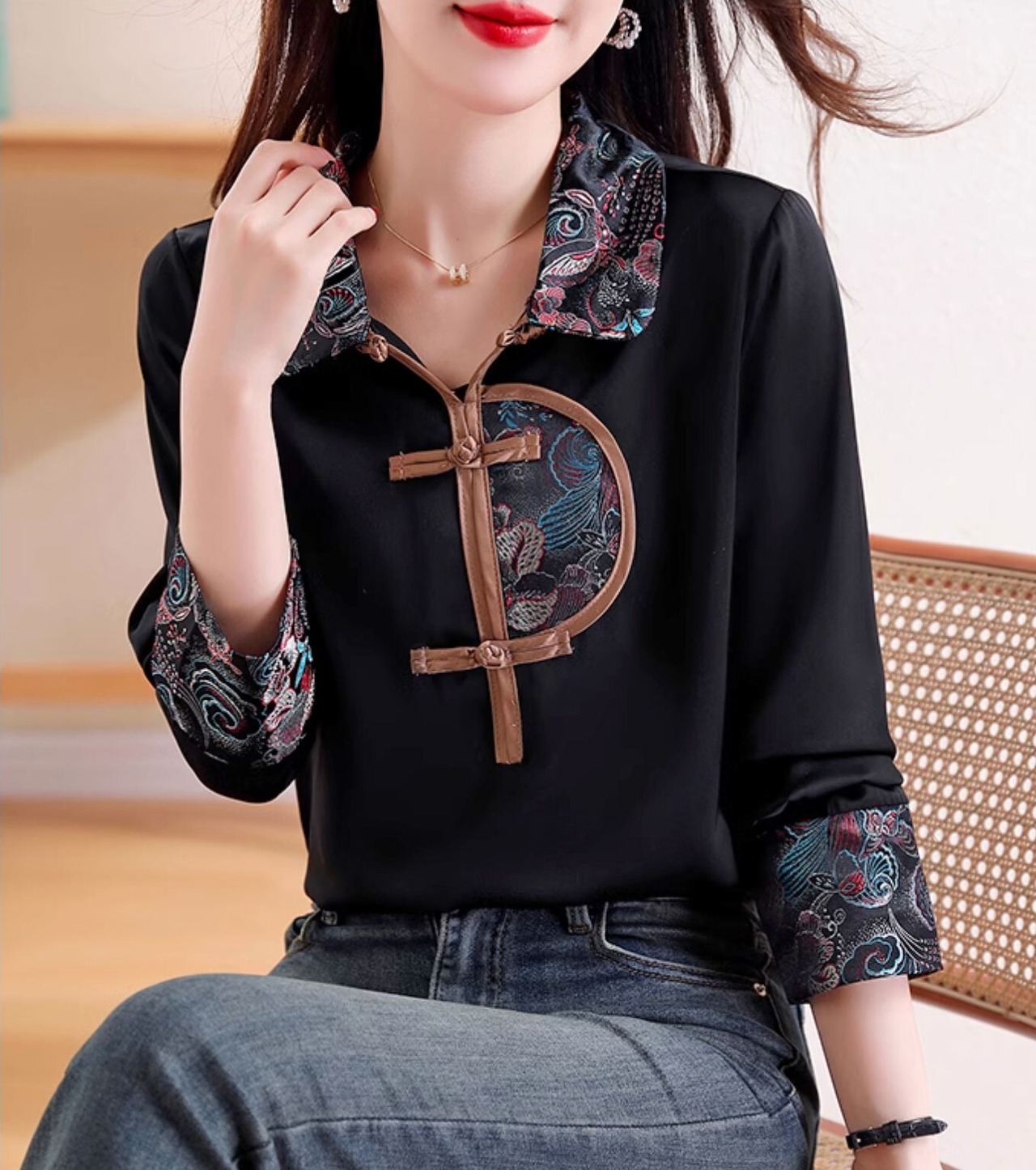 チャイナ風トップス 秋冬 長袖 高級感 上品 雅な風合い zt558