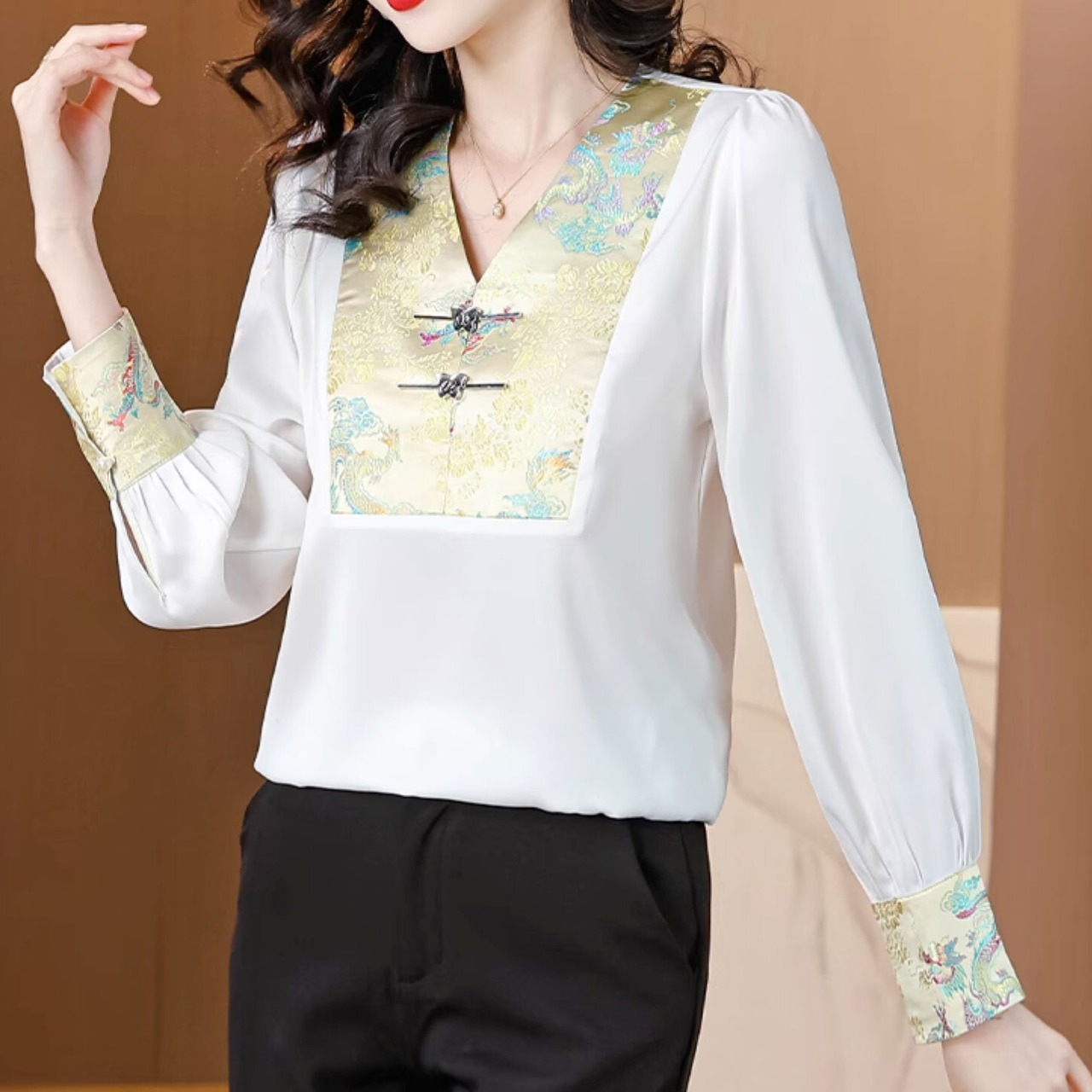 チャイナ風トップス 秋冬 Vネック 長袖 雅な風合い 高級感 上品 チャイナ風シャツ zt560