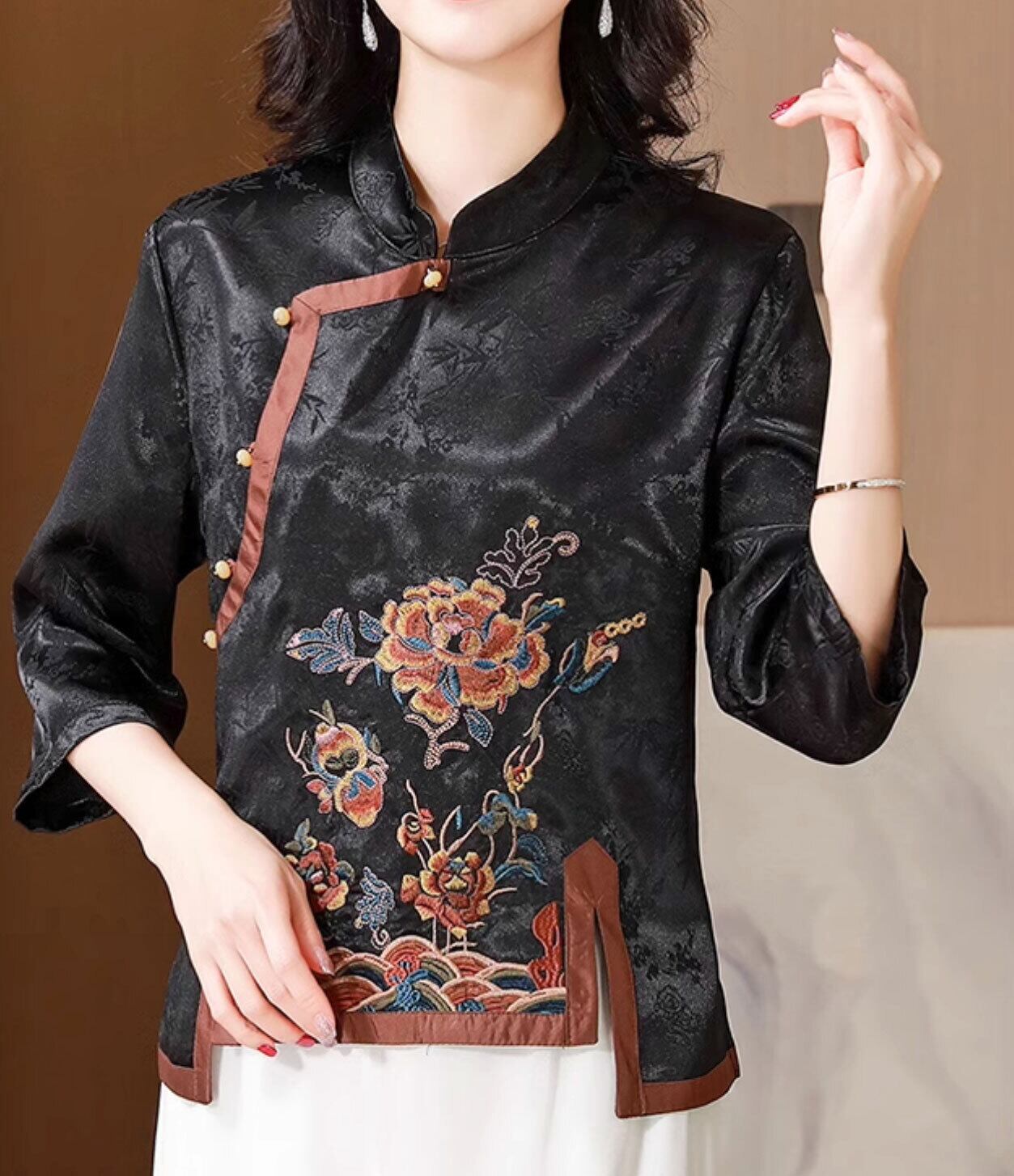 チャイナ風トップス 秋冬 刺繍 七分袖 雅な風合い 高級感 上品 チャイナ風シャツ zt561