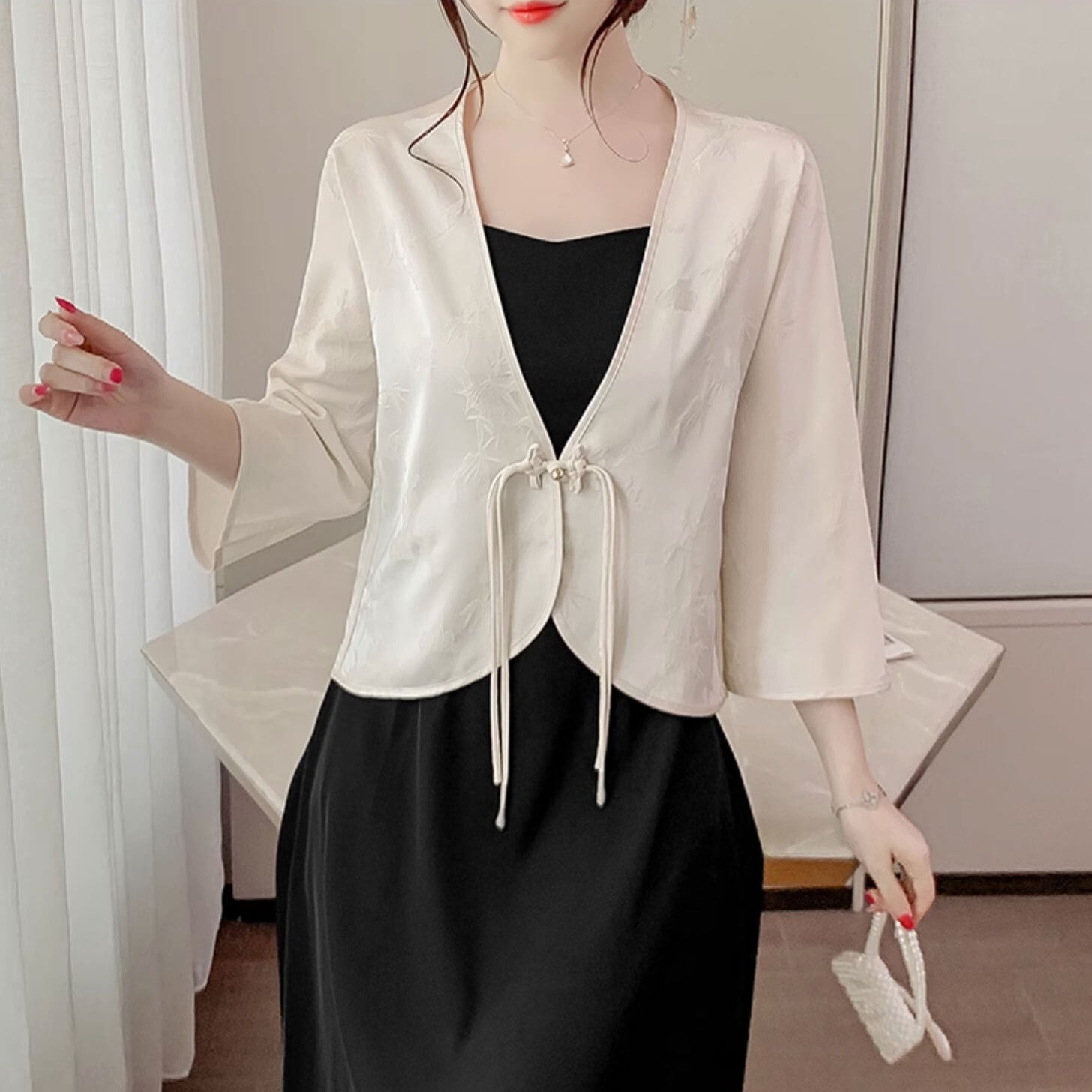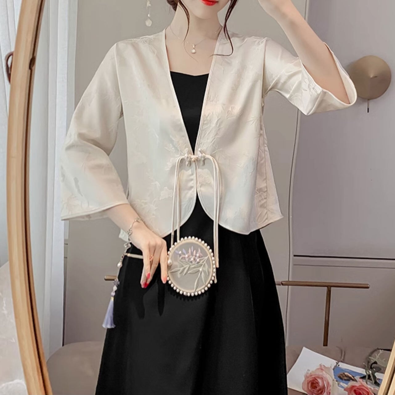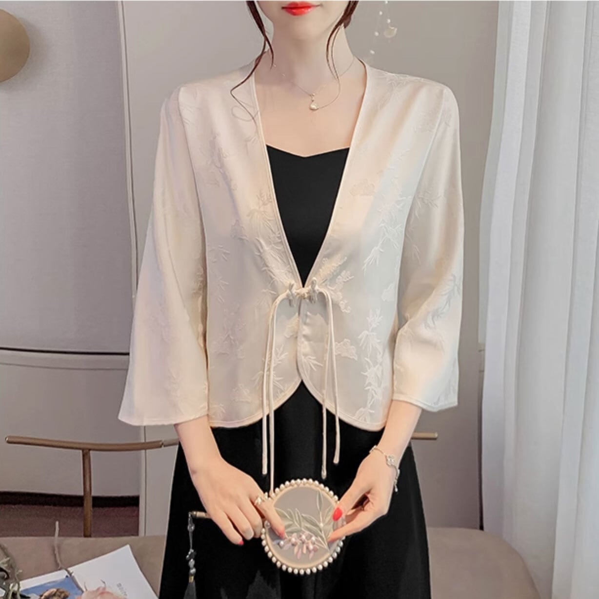 チャイナ風トップス 薄手 七分袖 羽織 上品な風合い 高級感 zt568