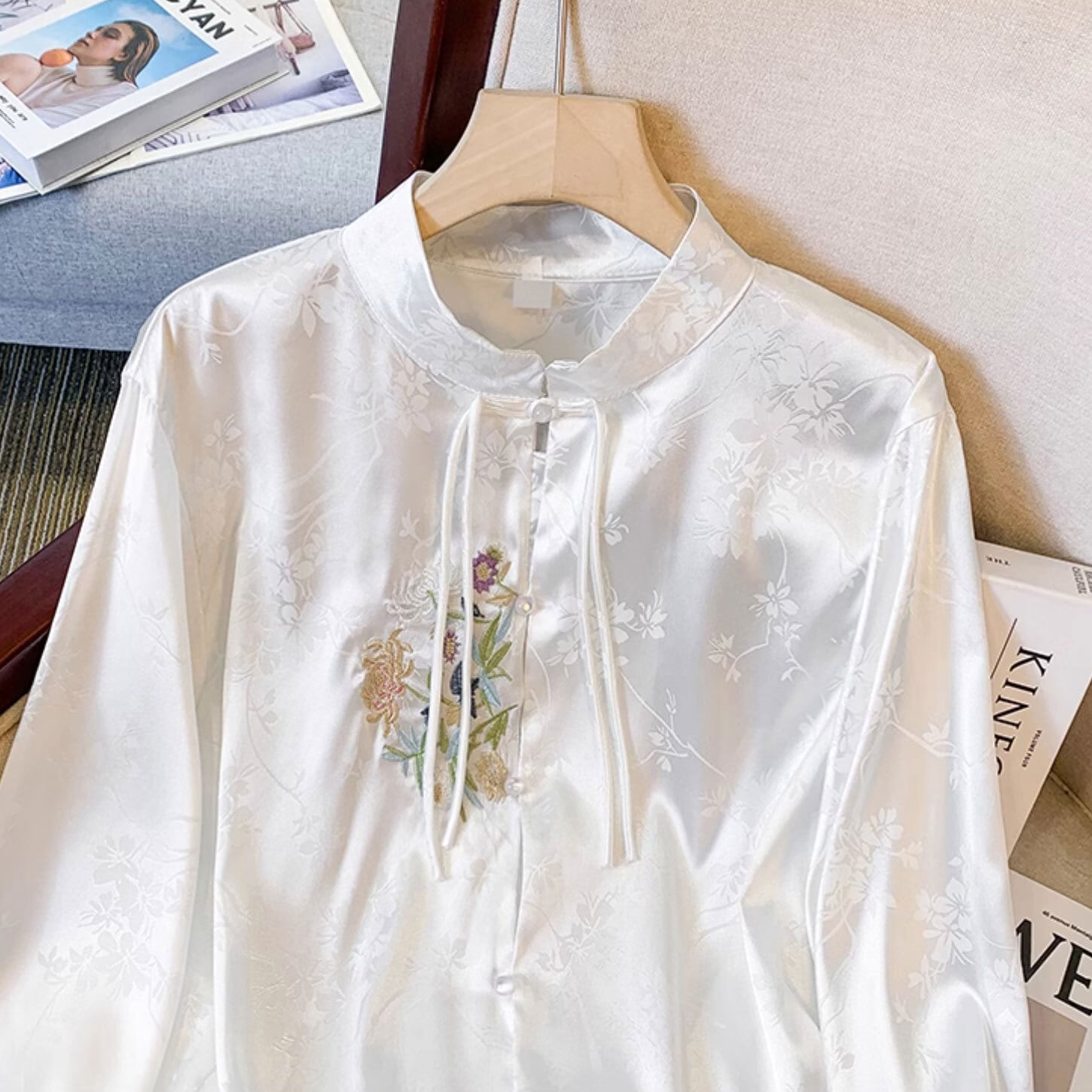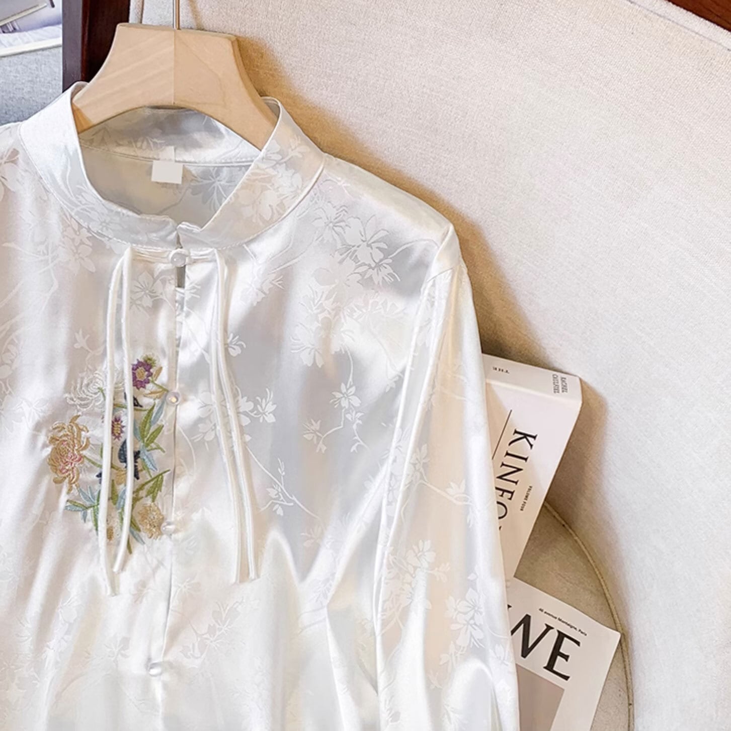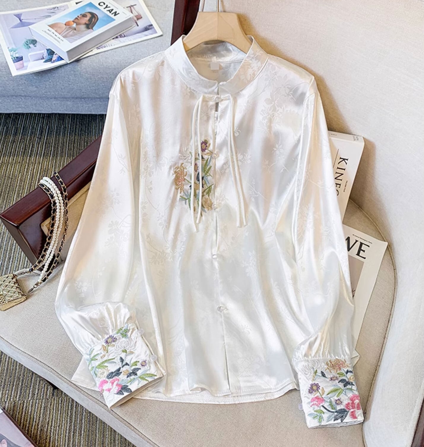 チャイナ風トップス 秋冬 高級感 刺繍 長袖 華やかな風合い 前開き zt571
