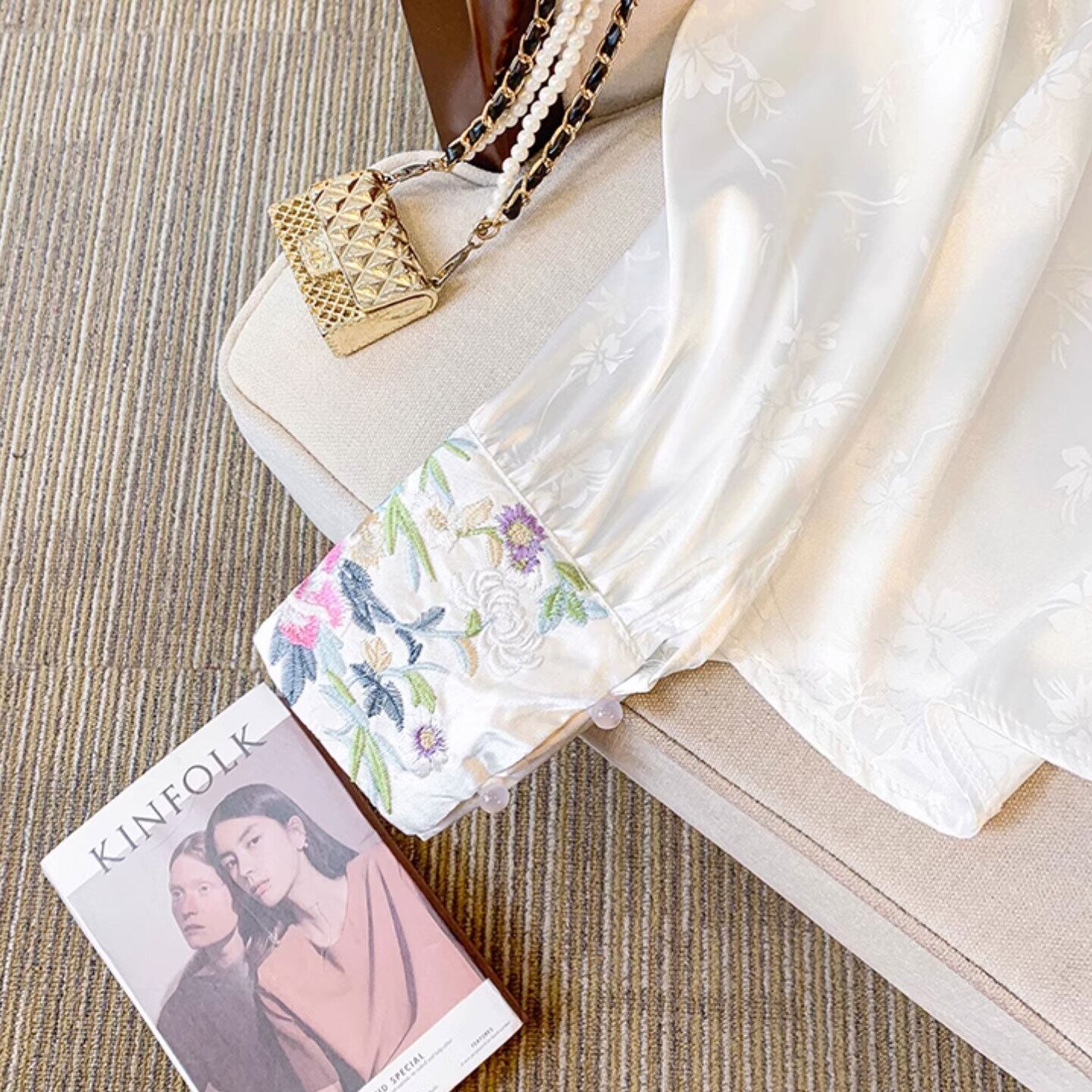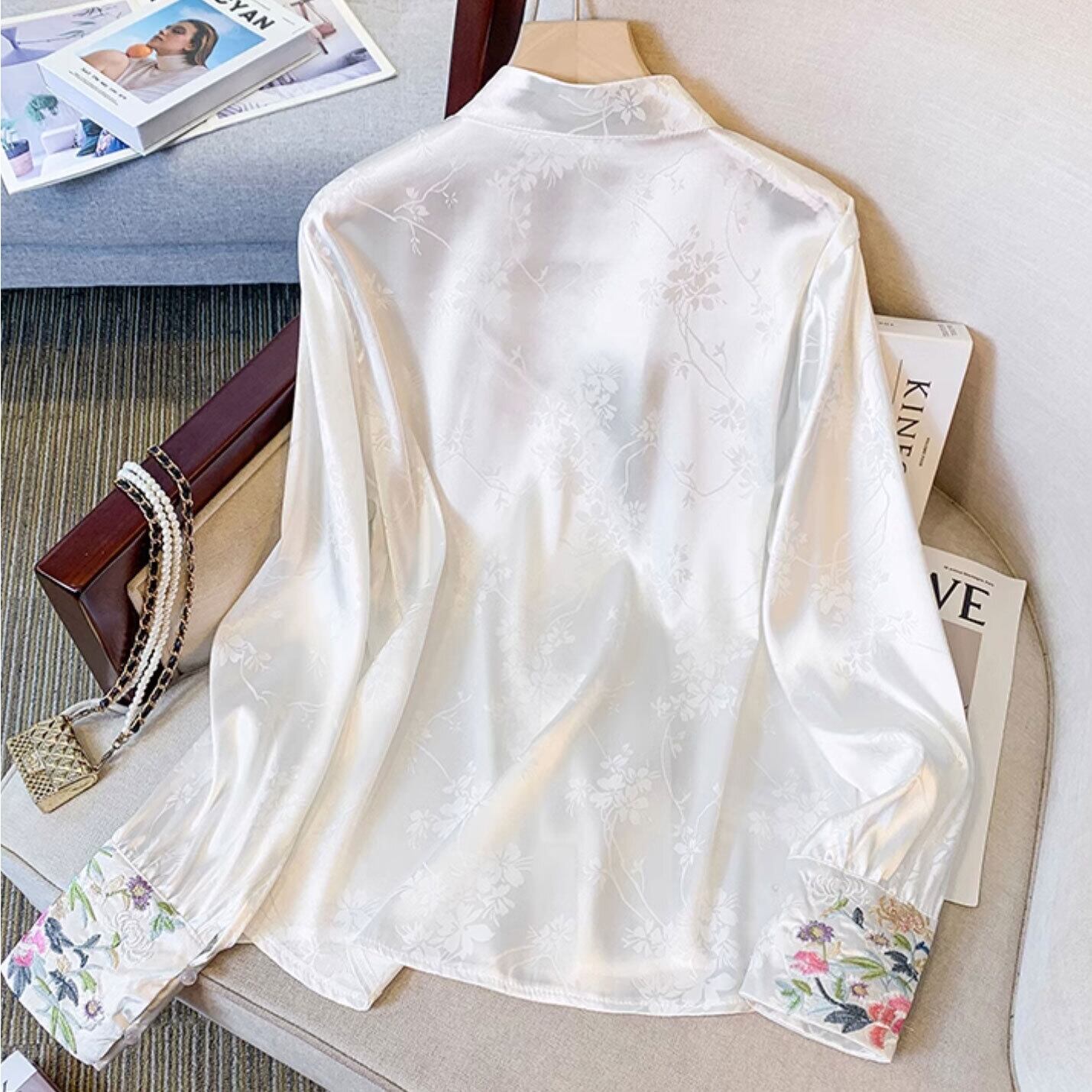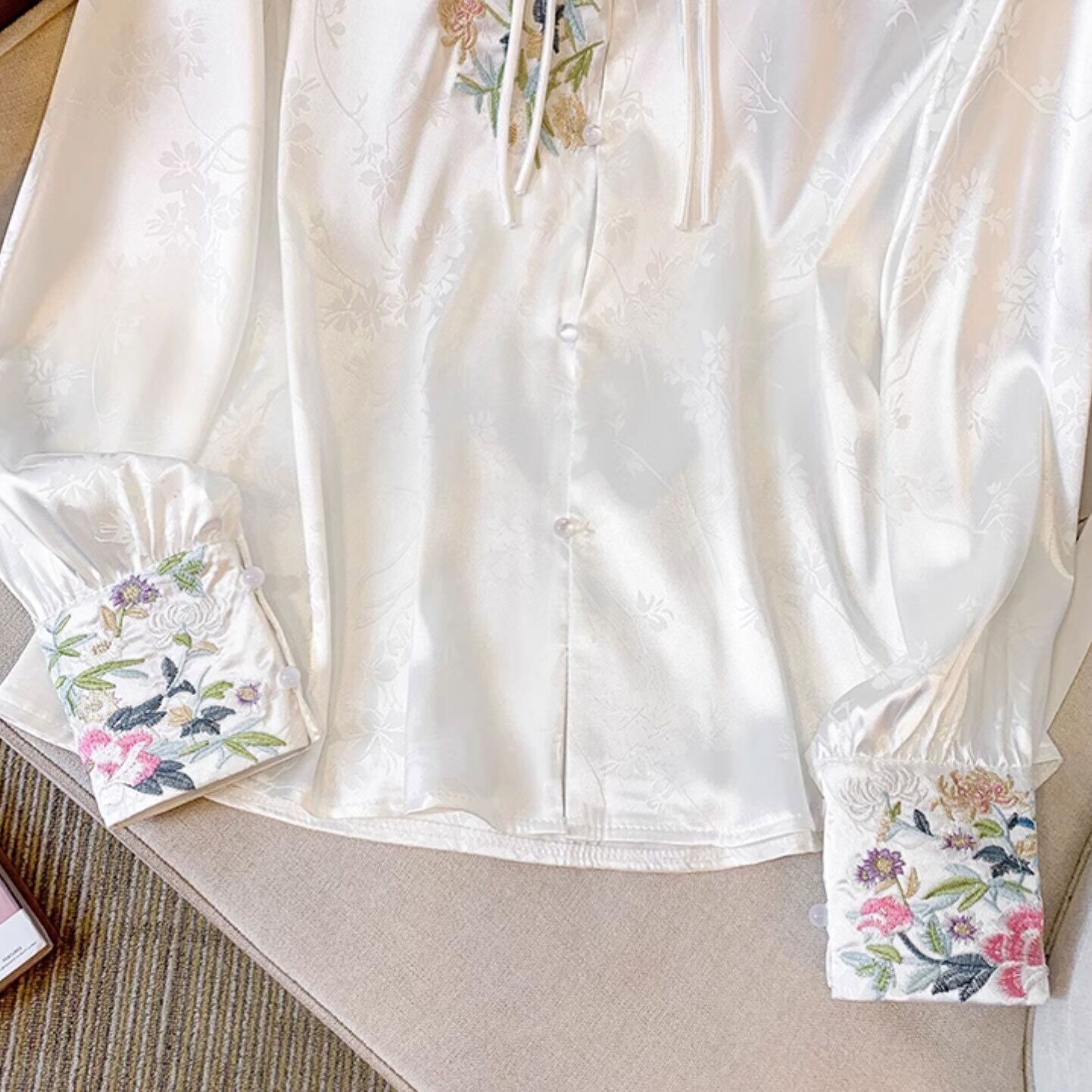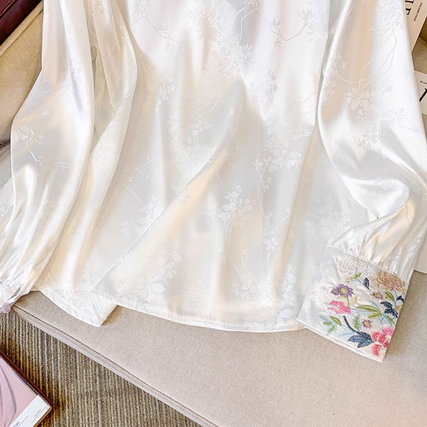 チャイナ風トップス 秋冬 高級感 刺繍 長袖 華やかな風合い 前開き zt571