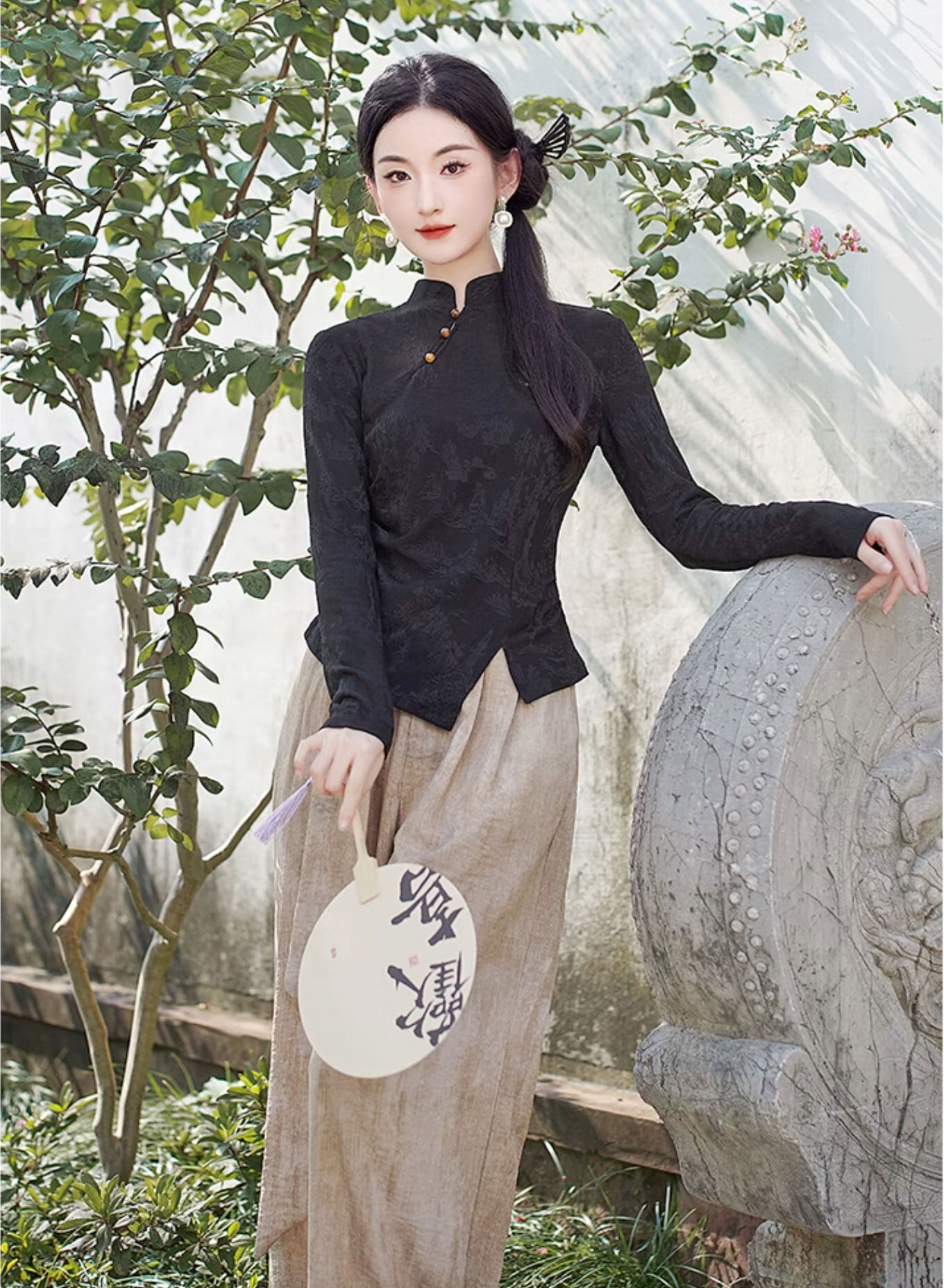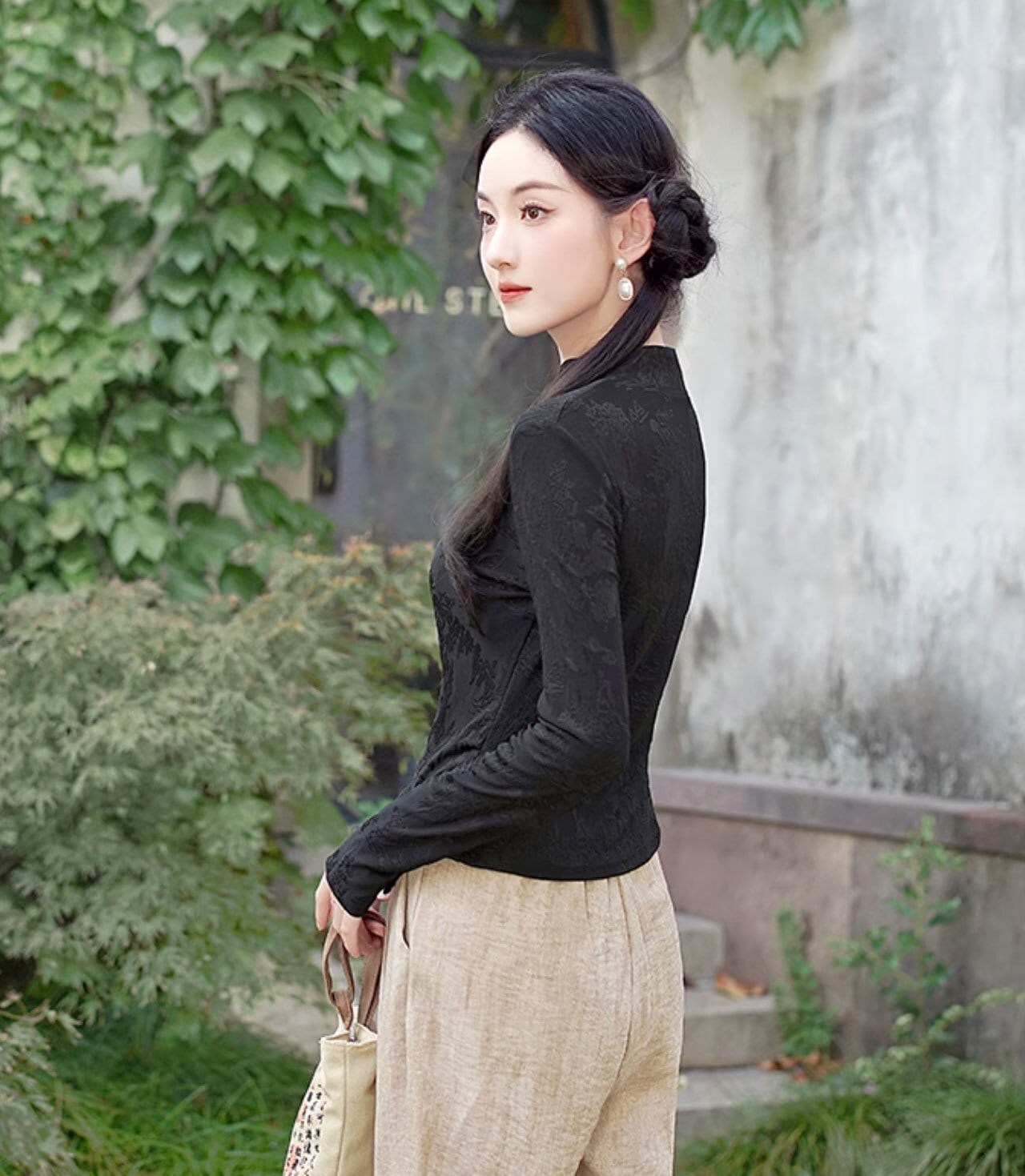 チャイナ服 長袖トップス 上品な黒 スリム チャイナ風 普段着 民族衣装 zt578