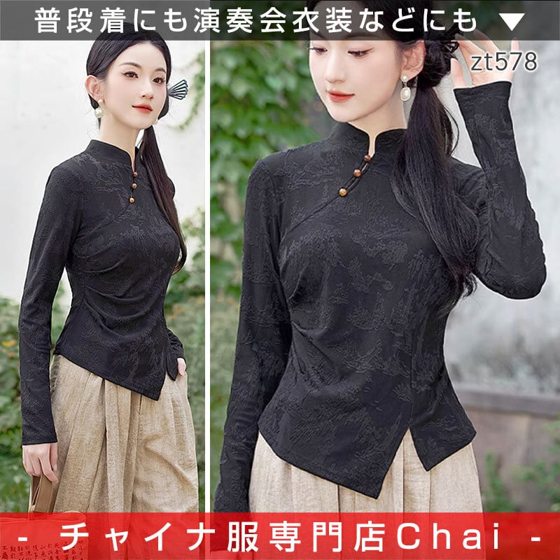 トップスも普段着も揃うチャイナ服専門店chaiです。こちらはチャイナ服 長袖トップス 上品な黒 スリム チャイナ風 普段着 民族衣装 zt578の商品ページです。上品な黒のチャイナトップスで、秋冬のチャイナファッションにつかいやすいアイテムです。