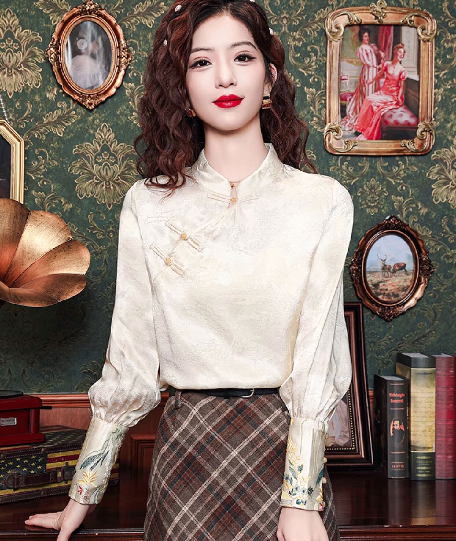 トップスも普段着も揃うチャイナ服専門店chaiです。こちらはチャイナ服 長袖トップス 刺繍袖 上品な風合い zt585の商品ページです。装飾袖が素敵なチャイナトップスで、秋冬のチャイナファッションにつかいやすいアイテムです。