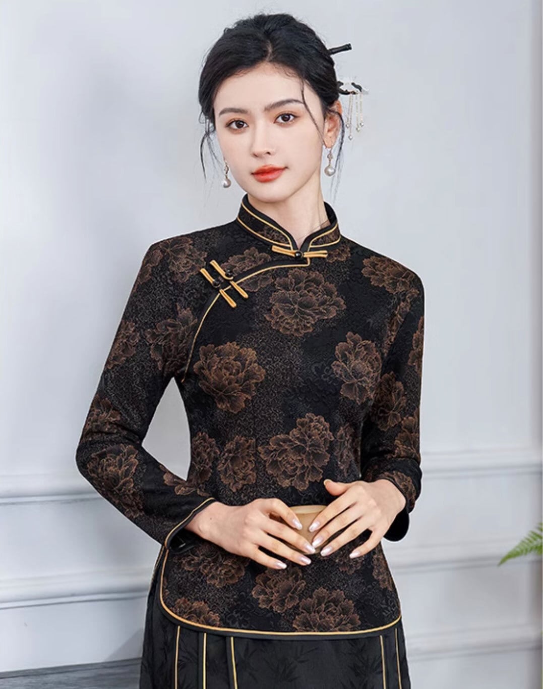 トップスも普段着も揃うチャイナ服専門店chaiです。こちらはチャイナ服 長袖トップス 秋冬 上品な風合い 長袖 スリムシルエット zt596の商品ページです。上品なテイストのチャイナトップスで、秋冬のチャイナファッションにつかいやすいアイテムです。