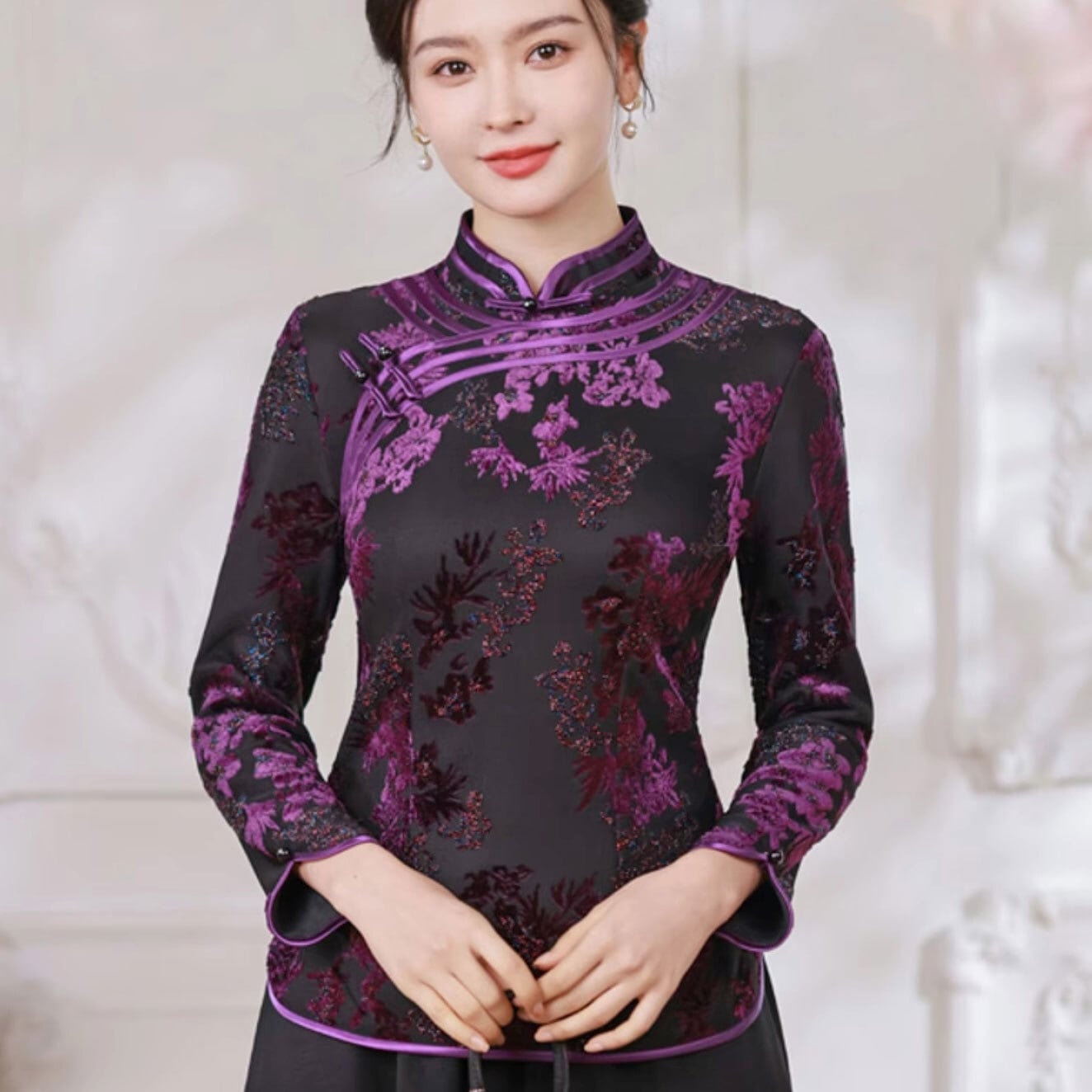 チャイナ服 長袖トップス 秋冬 上品な風合い 長袖 カラバリ豊富 暖か素材 zt601