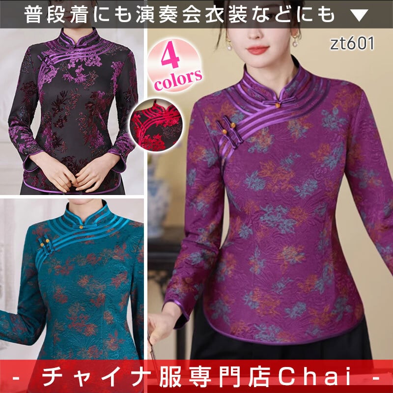 トップスも普段着も揃うチャイナ服専門店chaiです。こちらはチャイナ服 長袖トップス 秋冬 上品な風合い 長袖 カラバリ豊富 暖か素材 zt601の商品ページです。上品な風合いのチャイナトップスで、秋冬のチャイナファッションにつかいやすいアイテムです。