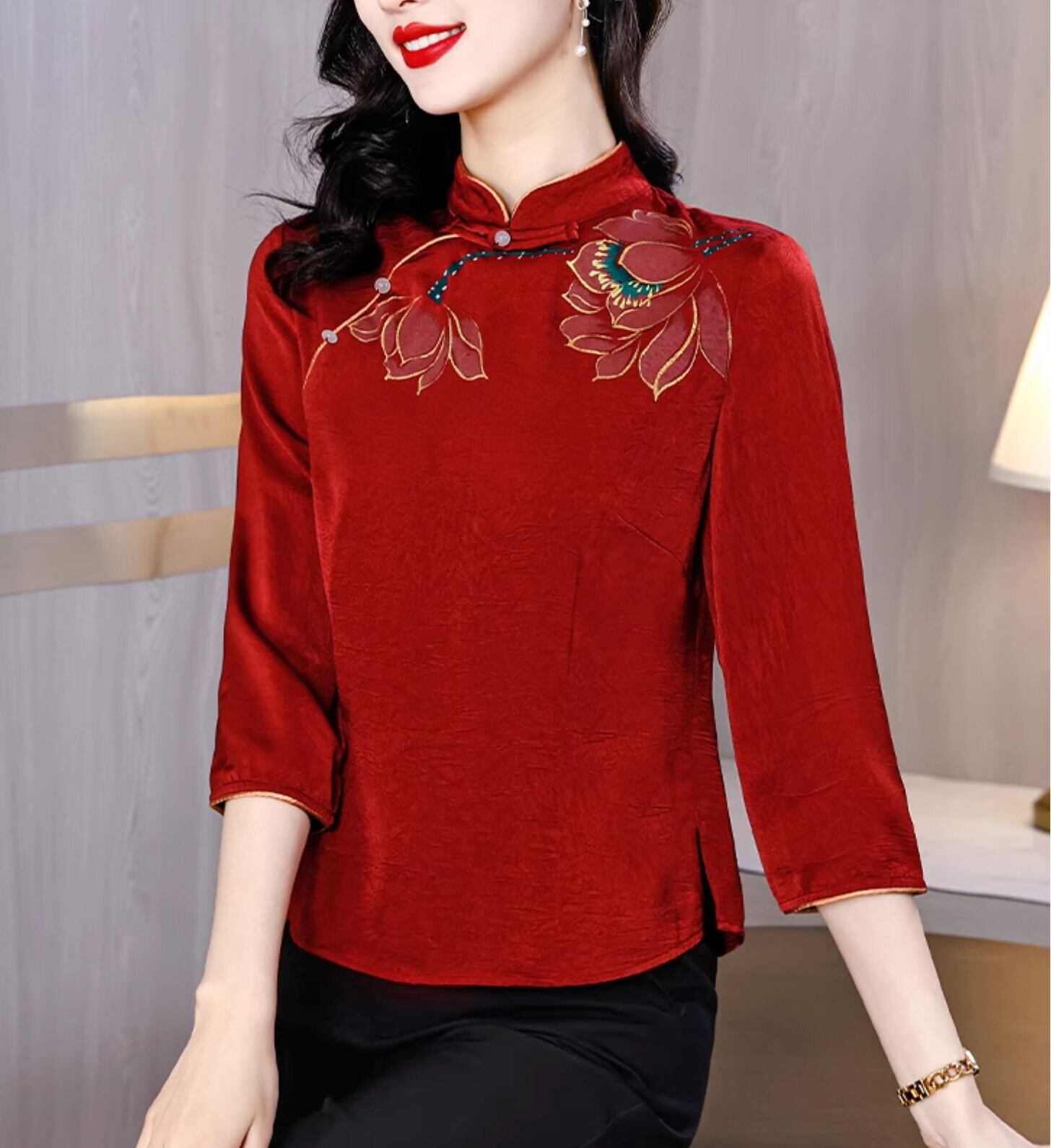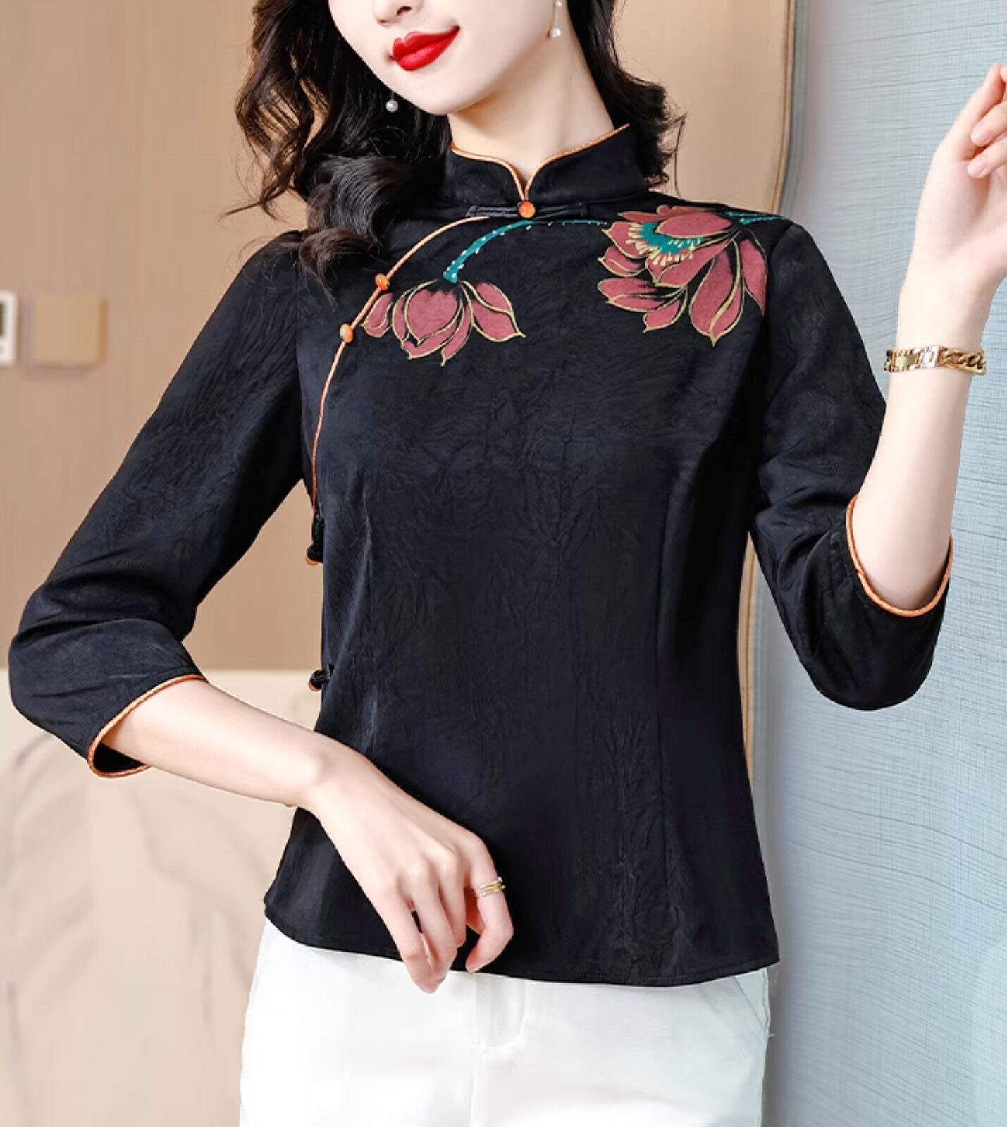 チャイナ服 トップス 秋冬 上品な風合い 七分袖 花柄 zt602